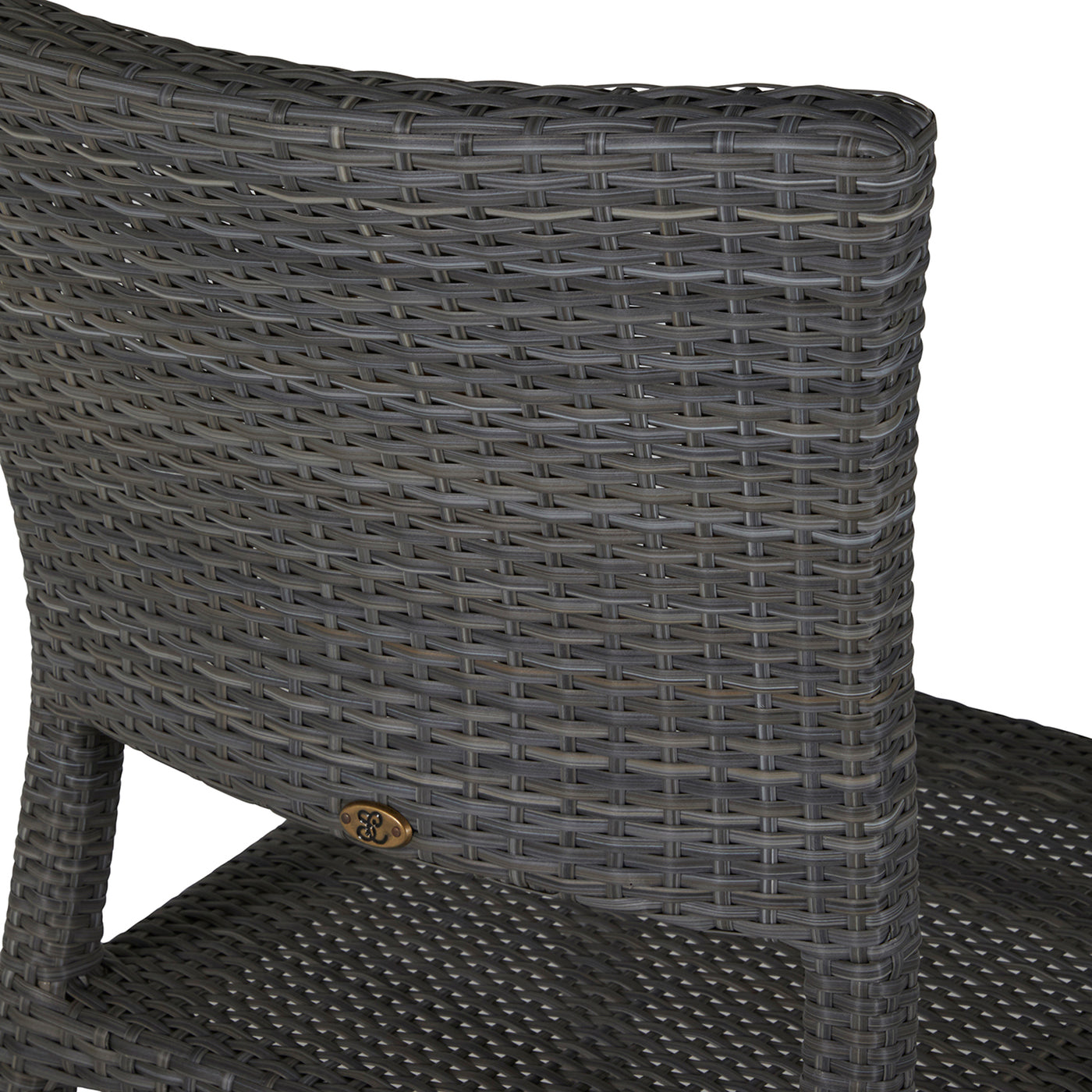 Brand Summer Classics Collection name Skye Color family Black, Gray Country of origin IDN Contract viable Yes Fade resistant Yes Finish family Brown, Gray Hardware finish Stainless Steel Inner frame material Wrought Aluminum Material N-Dura Resin Wicker, Wrought Aluminum Requires cushion No Seat back type Fixed Seating capacity 1 Stackable Yes Stain resistant Yes Uv resistant Yes Water resistant Yes