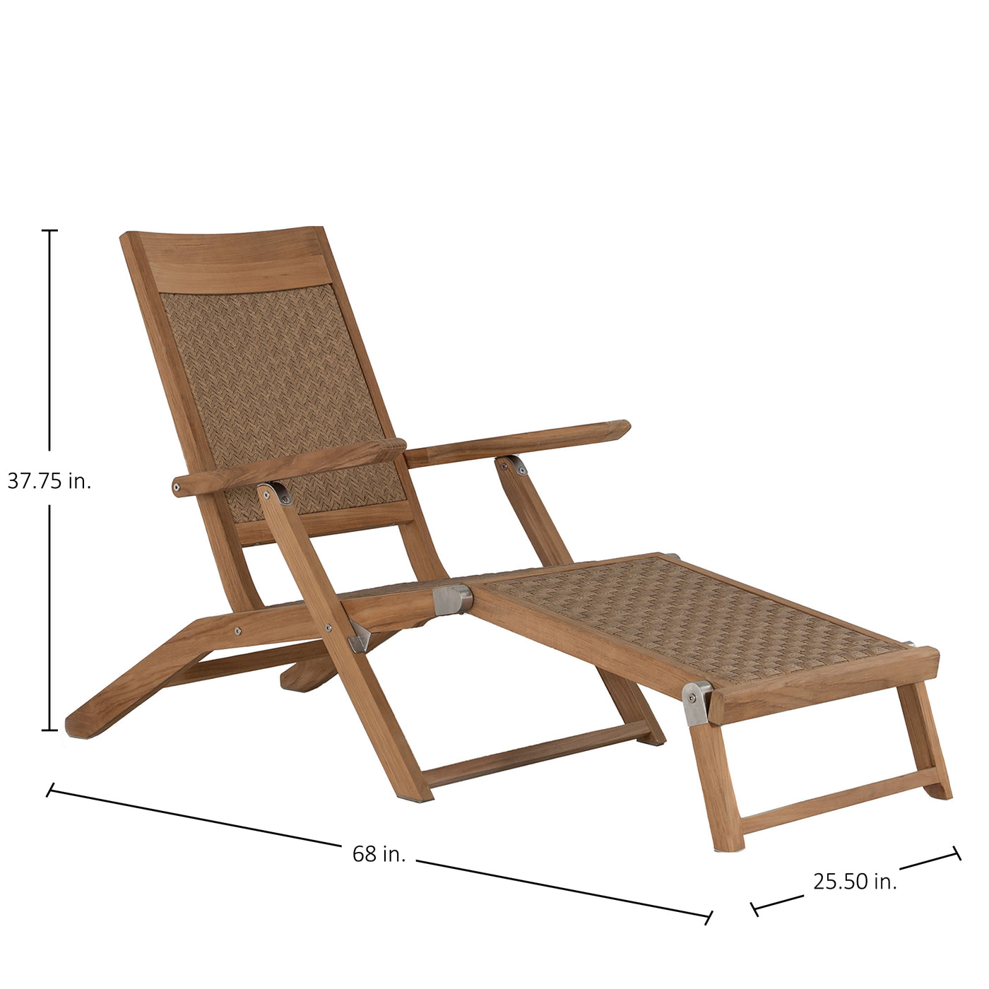 Introducing the Savannah Teak Adjustable Chaise, a luxurious piece inspired by the elegant yacht chaises created for the Titanic. Crafted from natural Indonesian teak and featuring handwoven N-Dura™ resin wicker in an intricate herringbone design, this chaise exudes timeless sophistication. Perfect for beach outings, it is easily foldable and lightweight, making it a breeze to carry. Equipped with stainless steel hardware and mechanisms, it offers smooth functionality and durability. Its adjustable design allows for two different sitting positions, easily modified while seated for maximum comfort. The detachable ottoman adds versatility, giving you the option to use it as a standalone piece. Experience exceptional relaxation with the Savannah Teak Adjustable Chaise – your new favorite beach chair!