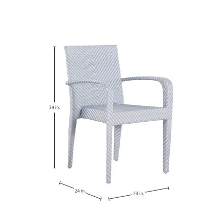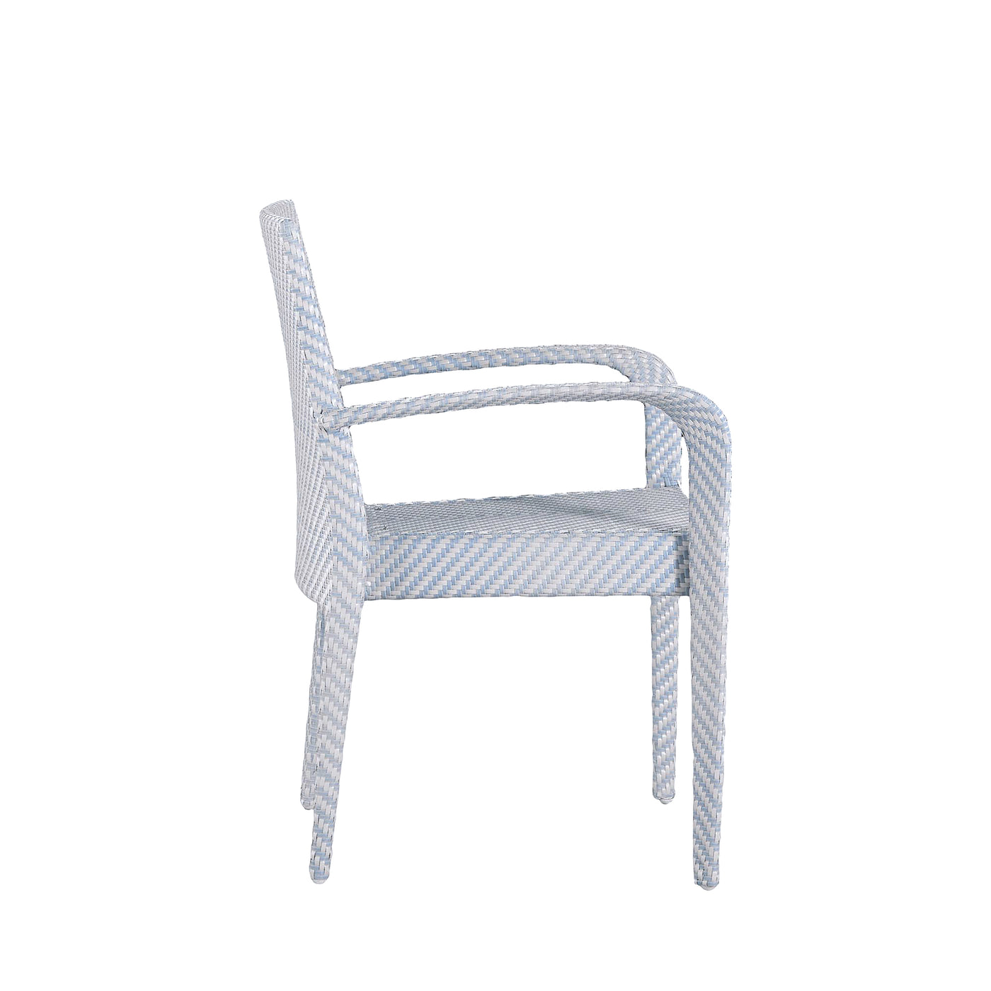 Designed with convenience in mind, the Bari Stacking Arm Chair is perfect for flexible outdoor dining. Its stackable design allows for easy storage, making it ideal for entertaining, events, or everyday use in compact spaces. Wrapped in the collection’s signature two-tone chevron N-Dura™ resin wicker, this chair offers lasting durability and a refined look. Gently curved arms and a supportive silhouette ensure comfort, while its weather-resistant frame stands up to the elements with ease.