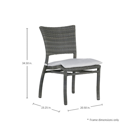 The Skye Side Chair is crafted from highly weather-resistant N-Duraâ„¢ resin wicker for a classic outdoor style. The chair's wrought aluminum frame ensures stability and long-lasting beauty. This stackable armchair beautifully accessorizes a variety of wicker patio furniture sets. This item is designed to be enjoyed either with or without a cushion. Please designate your choice in the below "Select a Cushion" dropdown.
