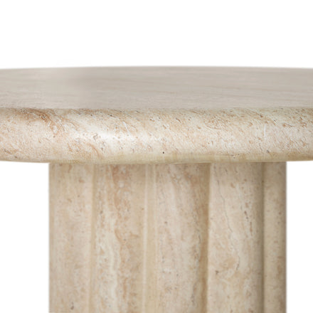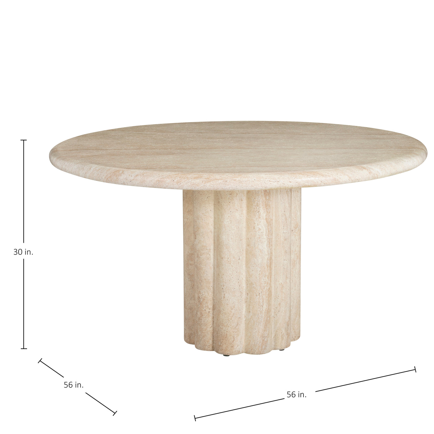 The Delphi Round Dining Table blends classical inspiration with contemporary form. Its rounded top and smooth, scalloped base mirror the artistry of hand-shaped stone, while the Roman Travertine finish provides a natural, sun-washed look that feels effortlessly authentic. Meticulously crafted from our durable cast stone composite, this piece withstands the elements without sacrificing elegance. Perfect for both intimate outdoor meals and sophisticated indoor settings, the Delphi Round Dining Table embodies timeless design and enduring craftsmanship.