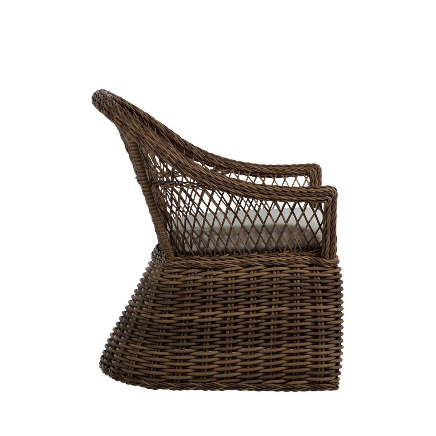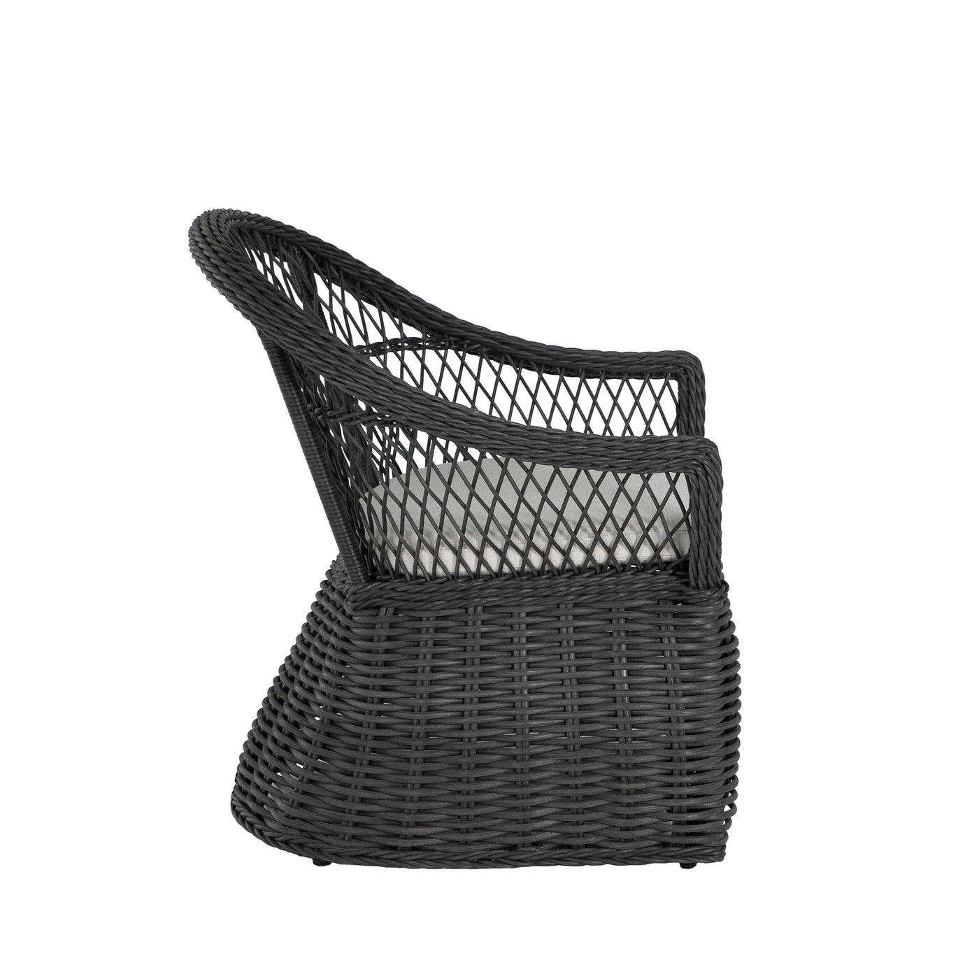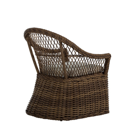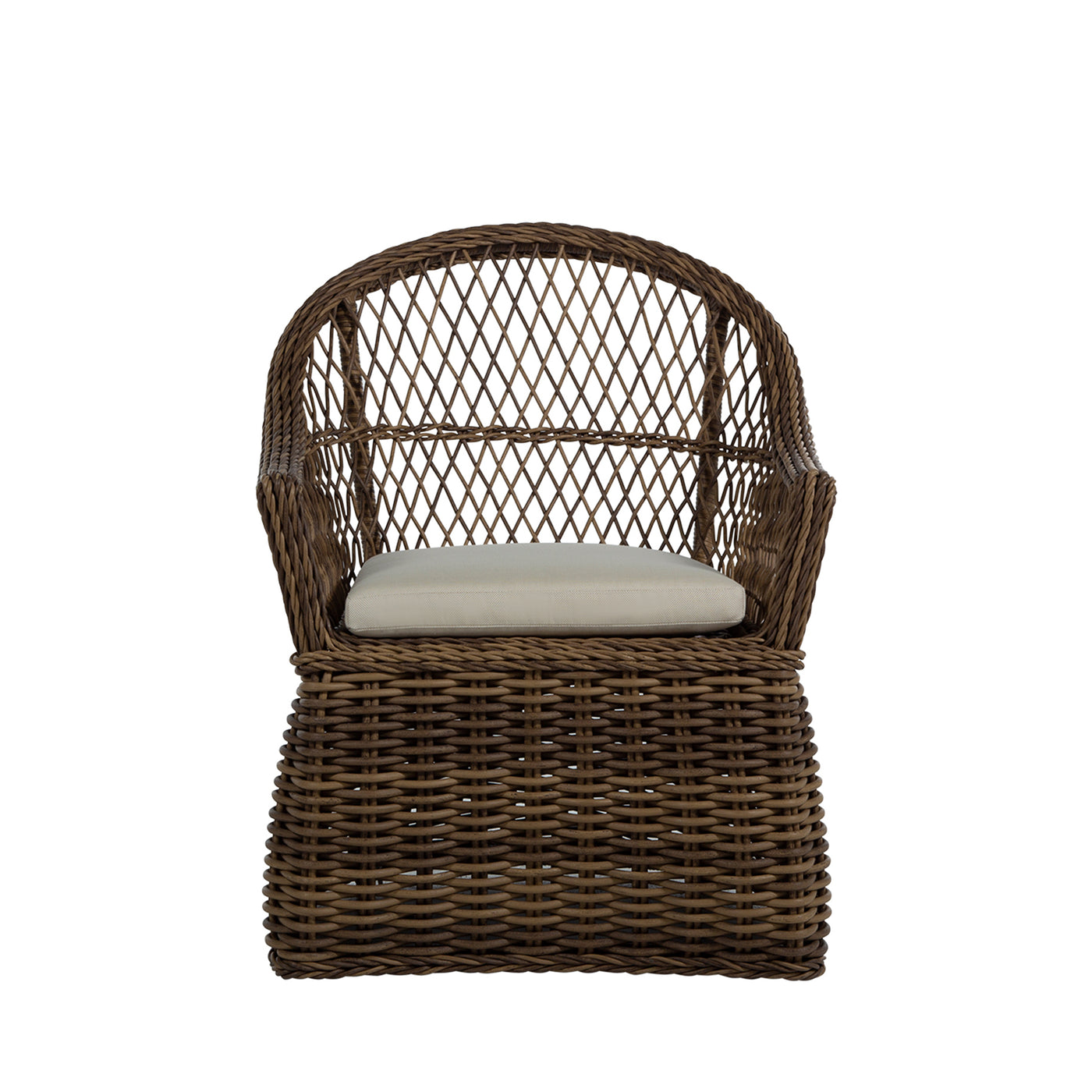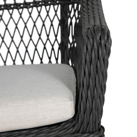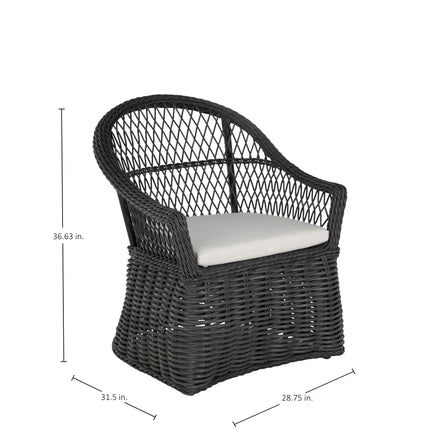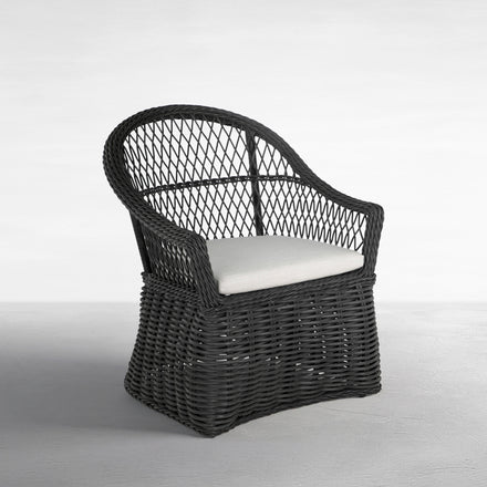 Introducing the Soho Handwoven Arm Chair, epitomizing relaxed outdoor living with its bohemian-inspired design and organic texture. Crafted from UV-resistant N-Duraâ„¢ resin wicker, this chair maintains vibrant color and structural integrity, resisting fading, cracking, and peeling. The intricately twisted frame and open-diamond weave adds a touch of elegance and visual appeal to any patio. Versatile and stylish, the arm chair can be enjoyed with or without a cushion, providing customizable comfort to suit your outdoor decor. Ideal for dining or casual seating, this arm chair fits perfectly around a dining table or as a standalone piece on your patio, garden, or poolside area. Enhance your outdoor space with the Soho Handwoven Dining Arm Chair, blending bohemian charm, modern durability, and versatile functionality for a comfortable and stylish seating experience. This item is designed to be enjoyed with or without a cushion. Please designate your choice in the "Select a Cushion" dropdown.
