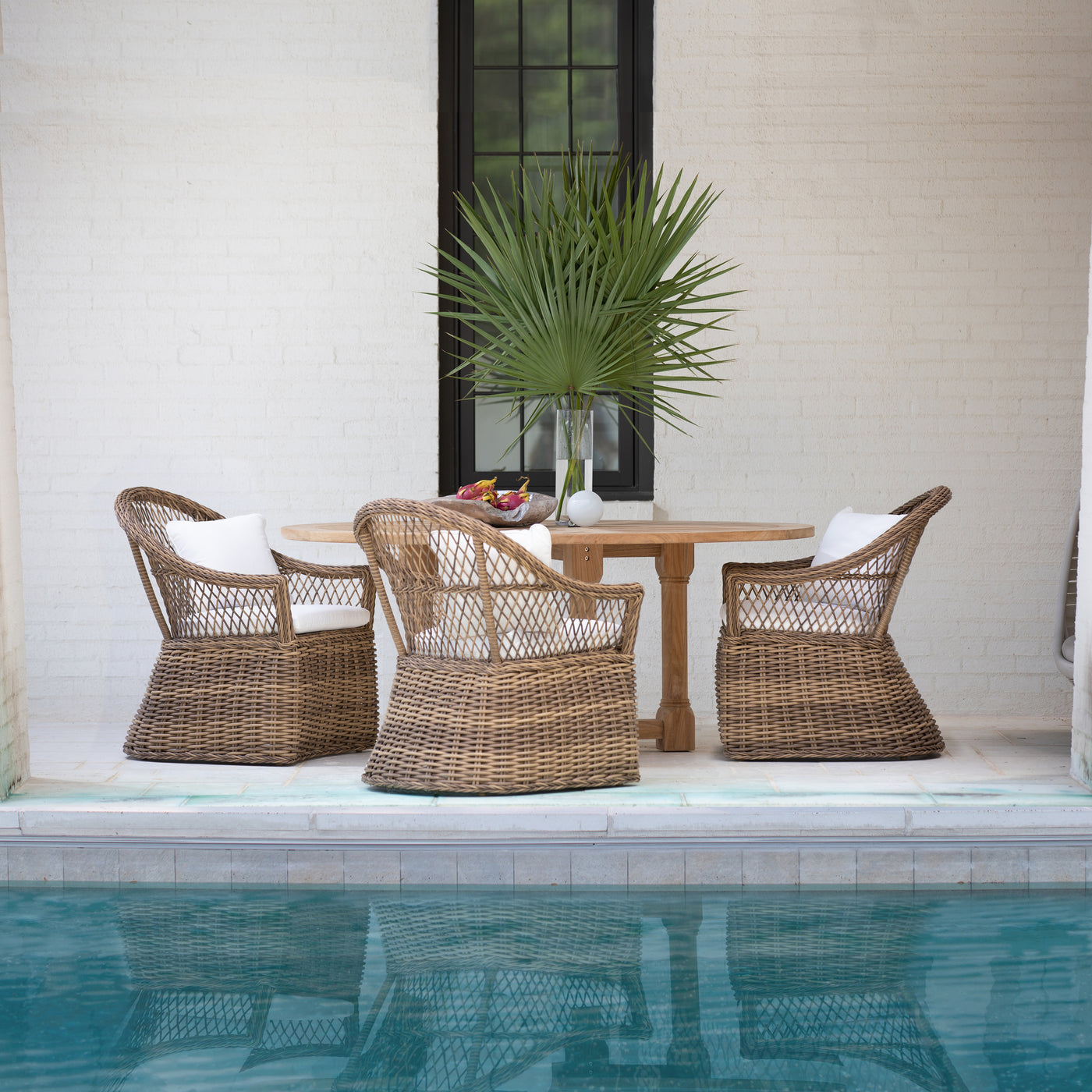 - Ideal for both dining and casual seating in patios, gardens, or poolside settings