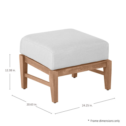 The Croquet Teak Ottoman is a refined outdoor essential, designed to flawlessly accompany the teak seating options within the Summer Classics collection. Constructed from Indonesian teak renowned for its robust weather-resistant qualities, this ottoman is thoughtfully slanted to pair seamlessly with both the lounge and recliner for a cohesive and inviting outdoor relaxation space.