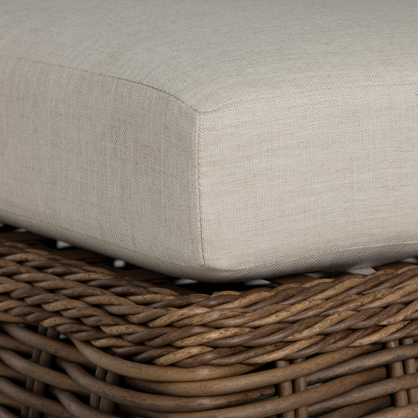 Introducing the Soho Handwoven Ottoman, an exquisite blend of bohemian charm and modern functionality for your outdoor living space. Crafted from durable N-Duraâ„¢ resin wicker, this ottoman features an organic texture with a beautifully thick woven design, perfectly complementing the Soho Handwoven Lounge and other pieces from the Soho Collection. The generously cushioned top offers exceptional comfort and can be used as a footrest, additional seating, or even a small table for your outdoor gatherings. The cushion is designed specifically for outdoor use, resistant to fading and moisture, ensuring it remains plush and attractive through all seasons. Elevate your outdoor decor with this stylish Soho Handwoven Ottoman, combining the relaxed nature of bohemian design with modern durability.