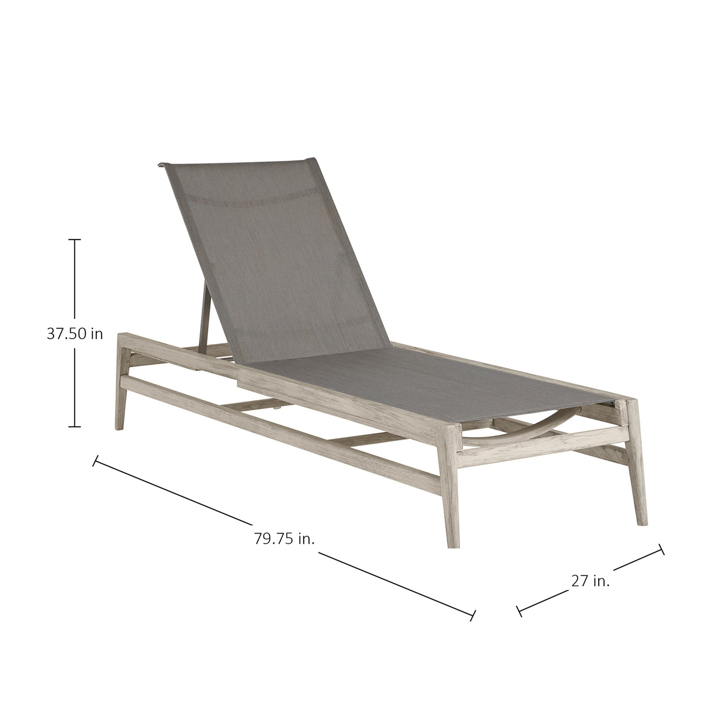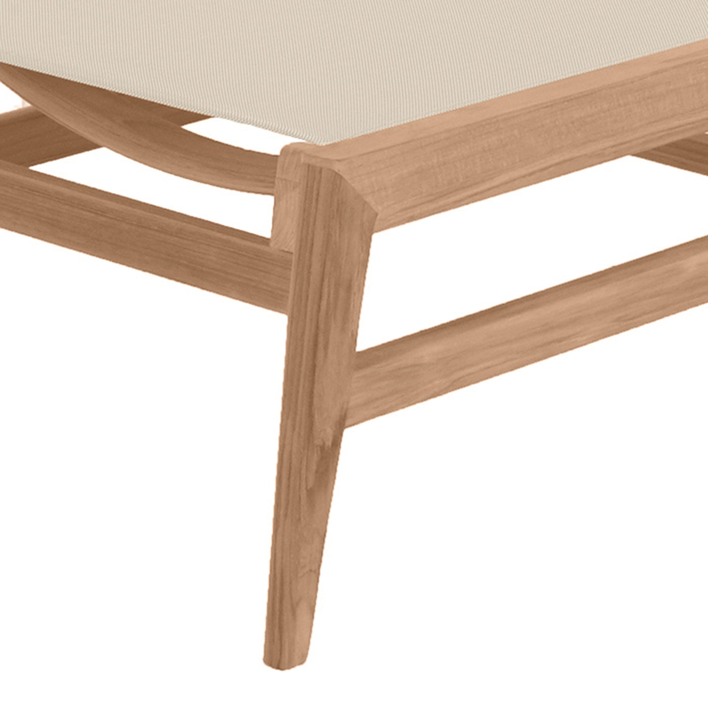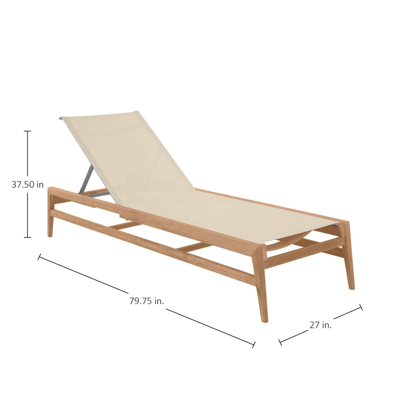 The Coast Teak Chaise epitomizes relaxed sophistication, inviting you to recline in style and comfort. Made from sustainably harvested Indonesian teak known for its weather-resistant qualities and natural patina that develops over time, this chaise lounge pairs beautifully with the durable and quick-drying Batyline™ Outdoor Performance Sling. Perfect for those who appreciate the enduring quality and want the option to maintain the teak's golden hue with regular care, or let it age gracefully for a more weathered appearance.