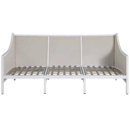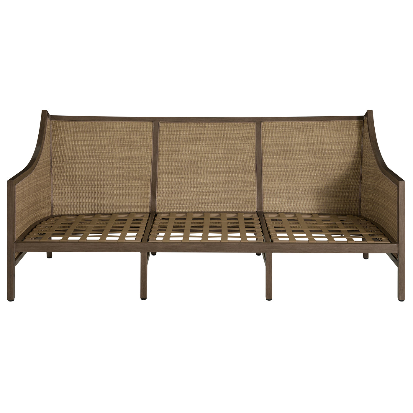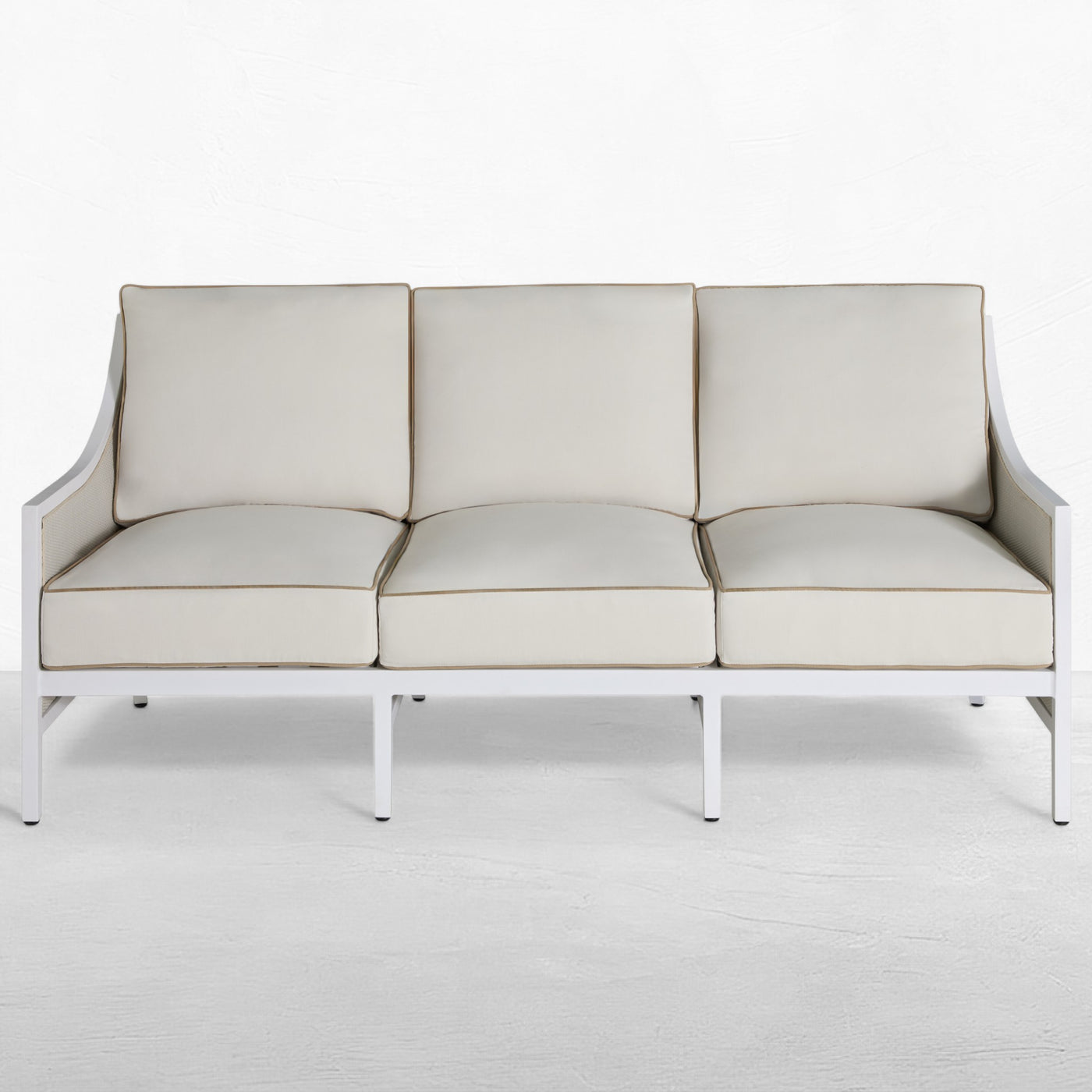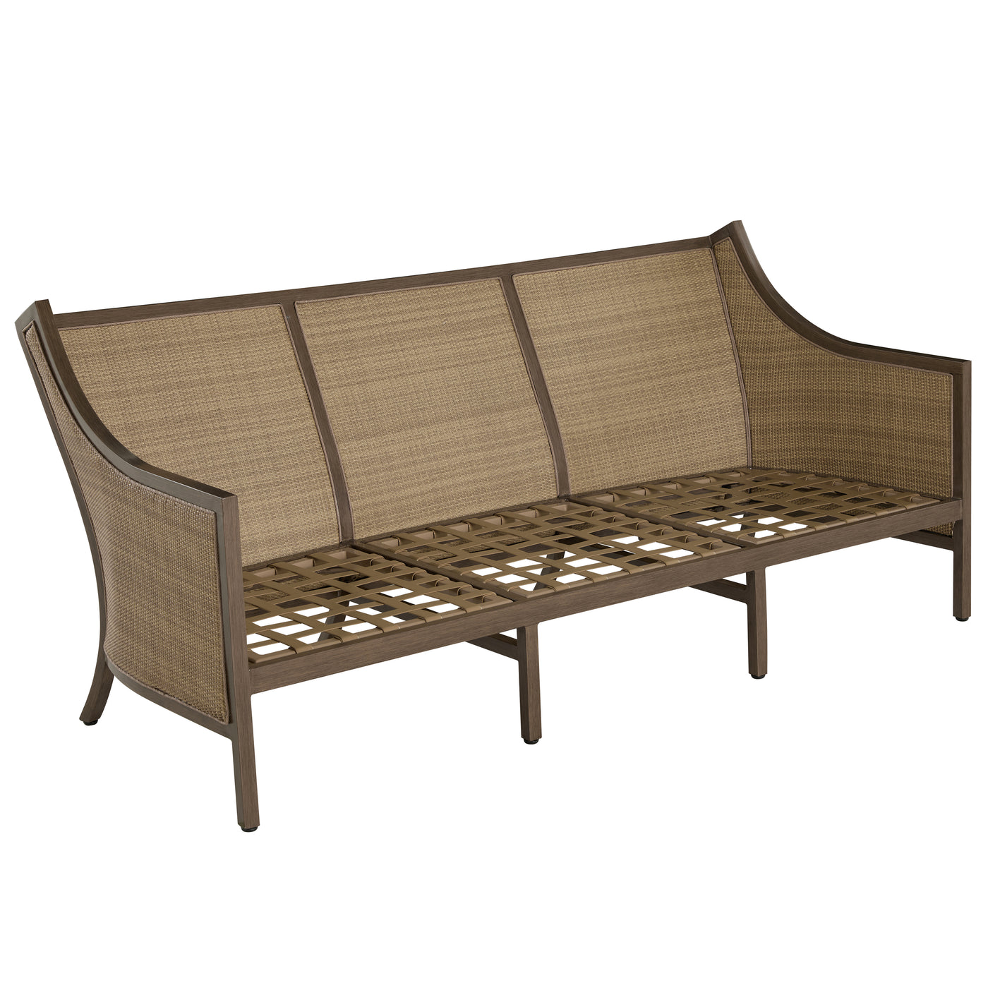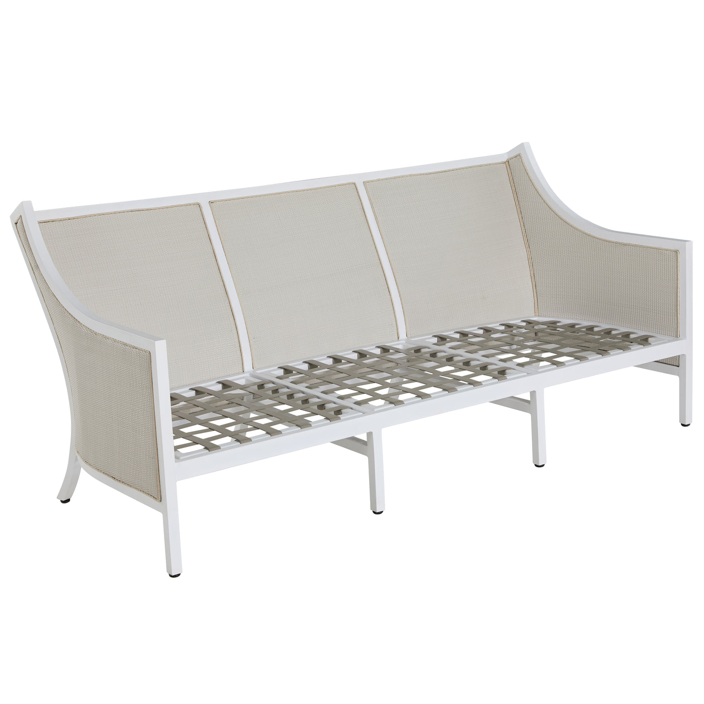The Grand Bermuda Sofa combines a wingback design with a raffia-like N-Duraâ„¢resin wicker on an aluminum frame for durable, year-round comfort. Its gentle slope and high-back construction combined with our plush cushions offer superior relaxation. Finished to mimic natural wicker, this UV-resistant material preserves its color and integrity for years, outperforming standard wicker. This sofa is perfect for leisurely lounging, social gatherings, or as a stylish focal point in any outdoor setting, seamlessly blending functionality, durability and timeless appeal. Available in various fabric choices, it delivers enduring style and comfort in either our Standard Plus or Dream Cushions.