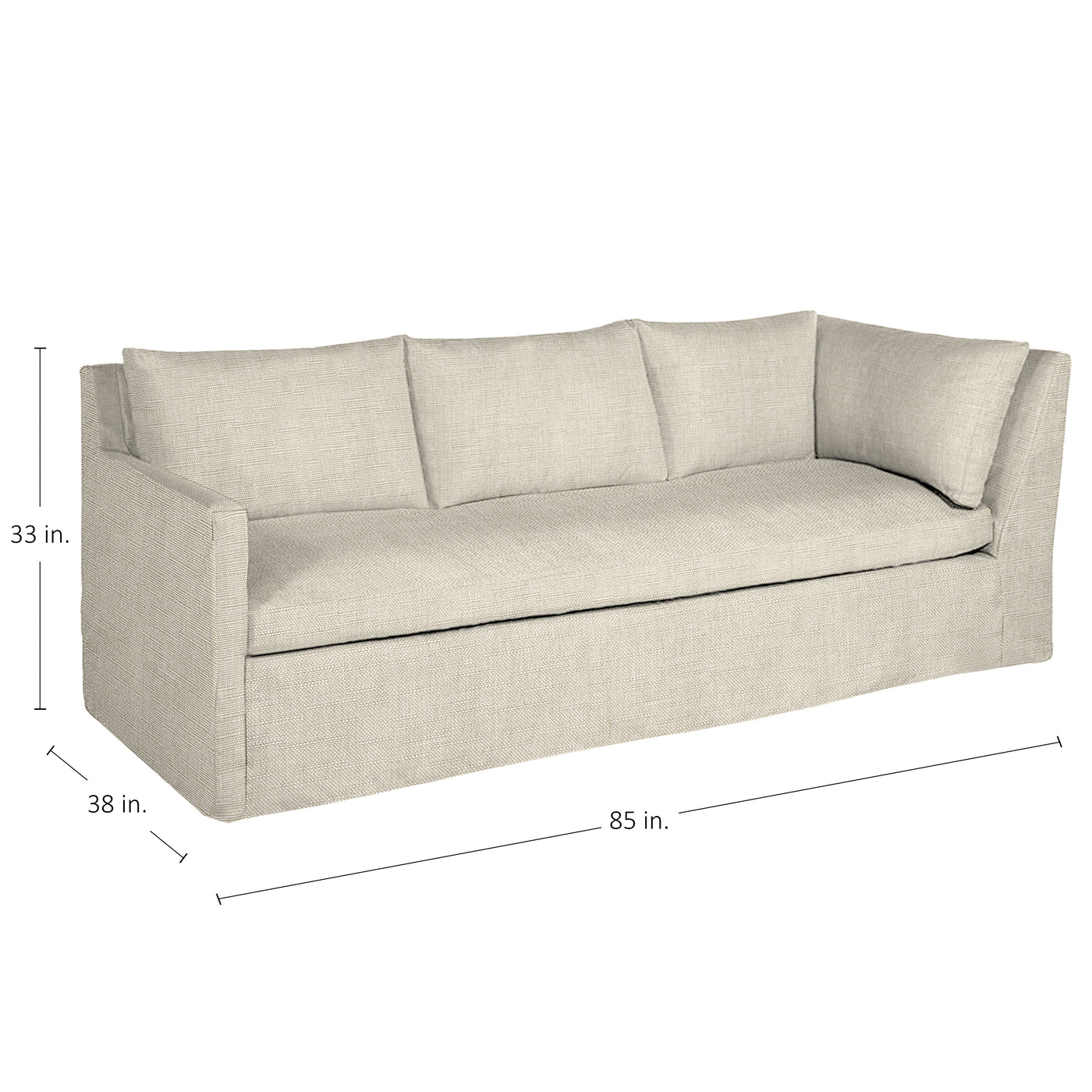 Width: 85" / Height: 33" / Depth: 38"