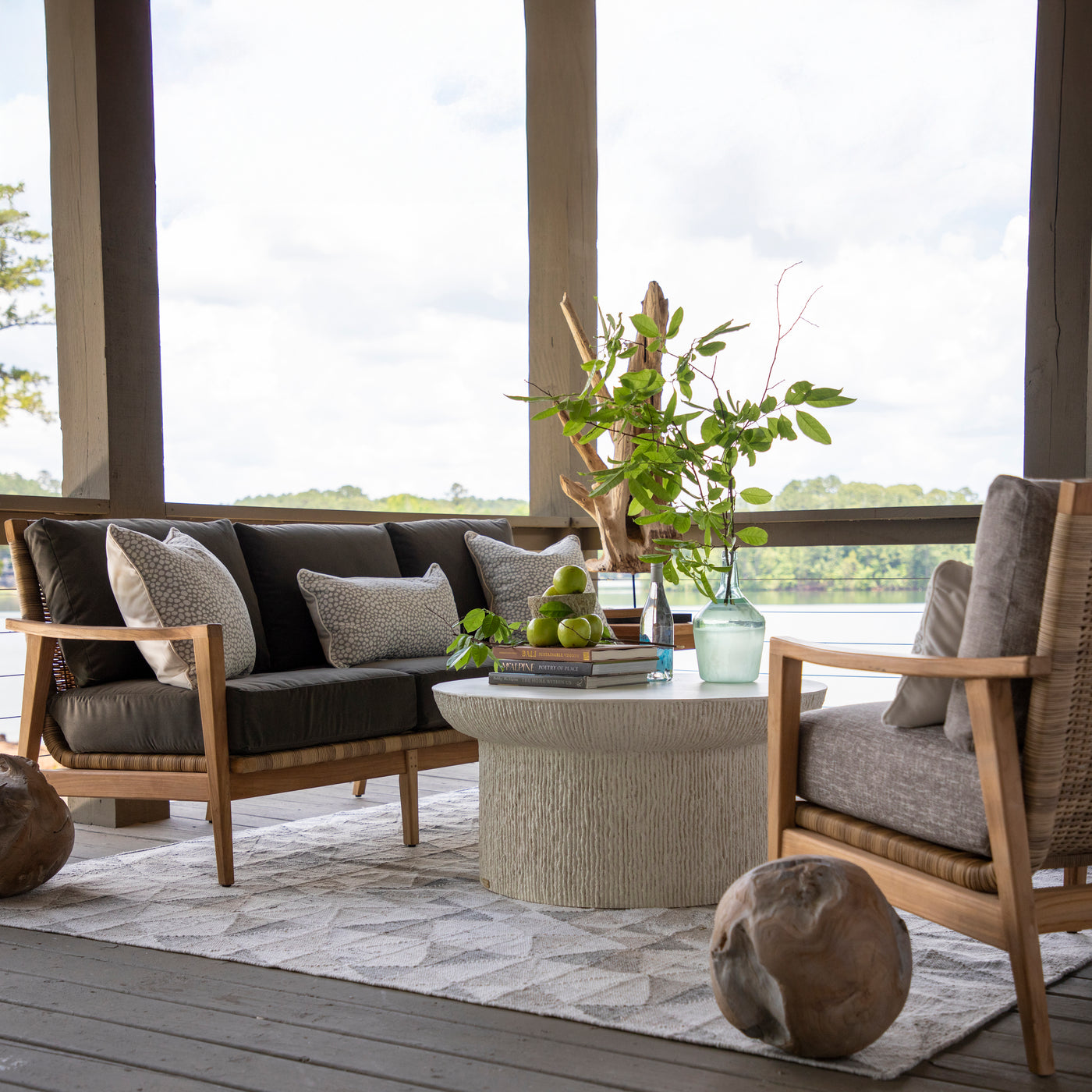 - Blends natural teak tones with handwoven wicker for a refined, coastal-inspired aesthetic