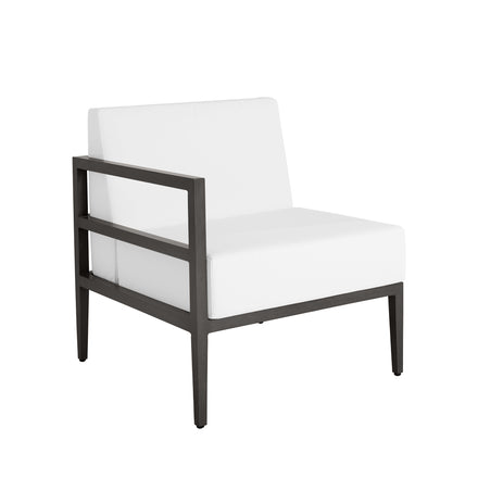 The Santa Barbara Left or Right-Facing Chair is a versatile piece designed to complement the Santa Barbara Slipper or other sectional pieces from the Santa Barbara Collection. Constructed from durable wrought aluminum, it offers exceptional strength and weather resistance, making it ideal for outdoor use. The chair features clean lines and a minimalist design, with comfortable cushions that provide a contemporary look and inviting seating experience. Its flexibility allows it to be used as an end piece, enhancing the modularity and functionality of your outdoor seating arrangement.