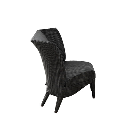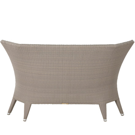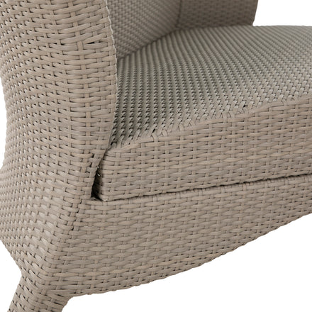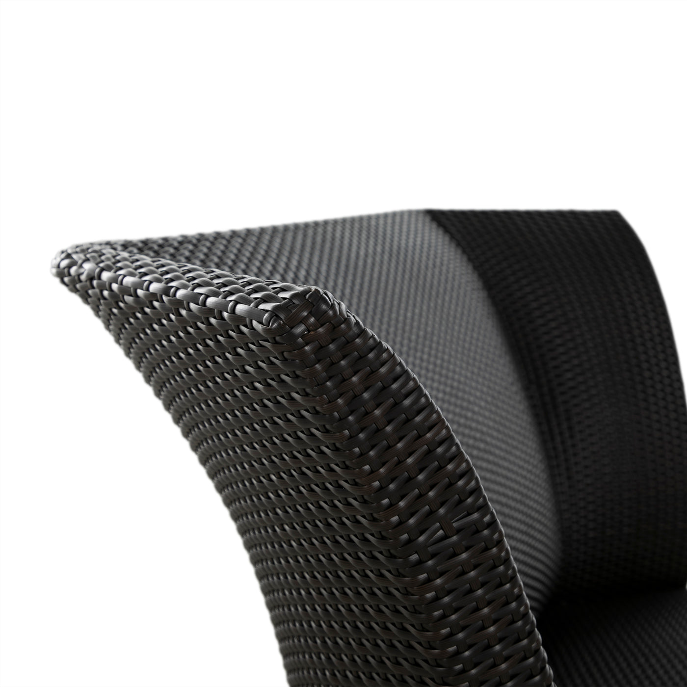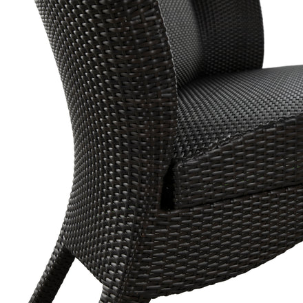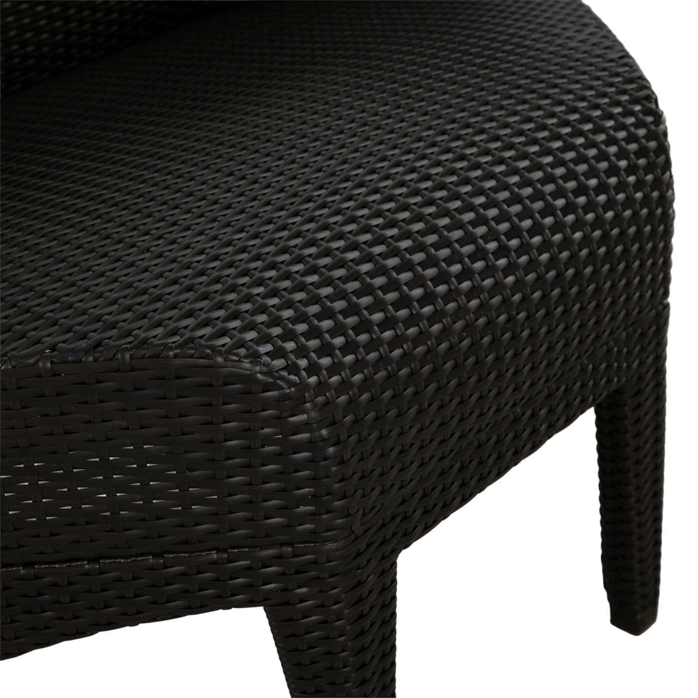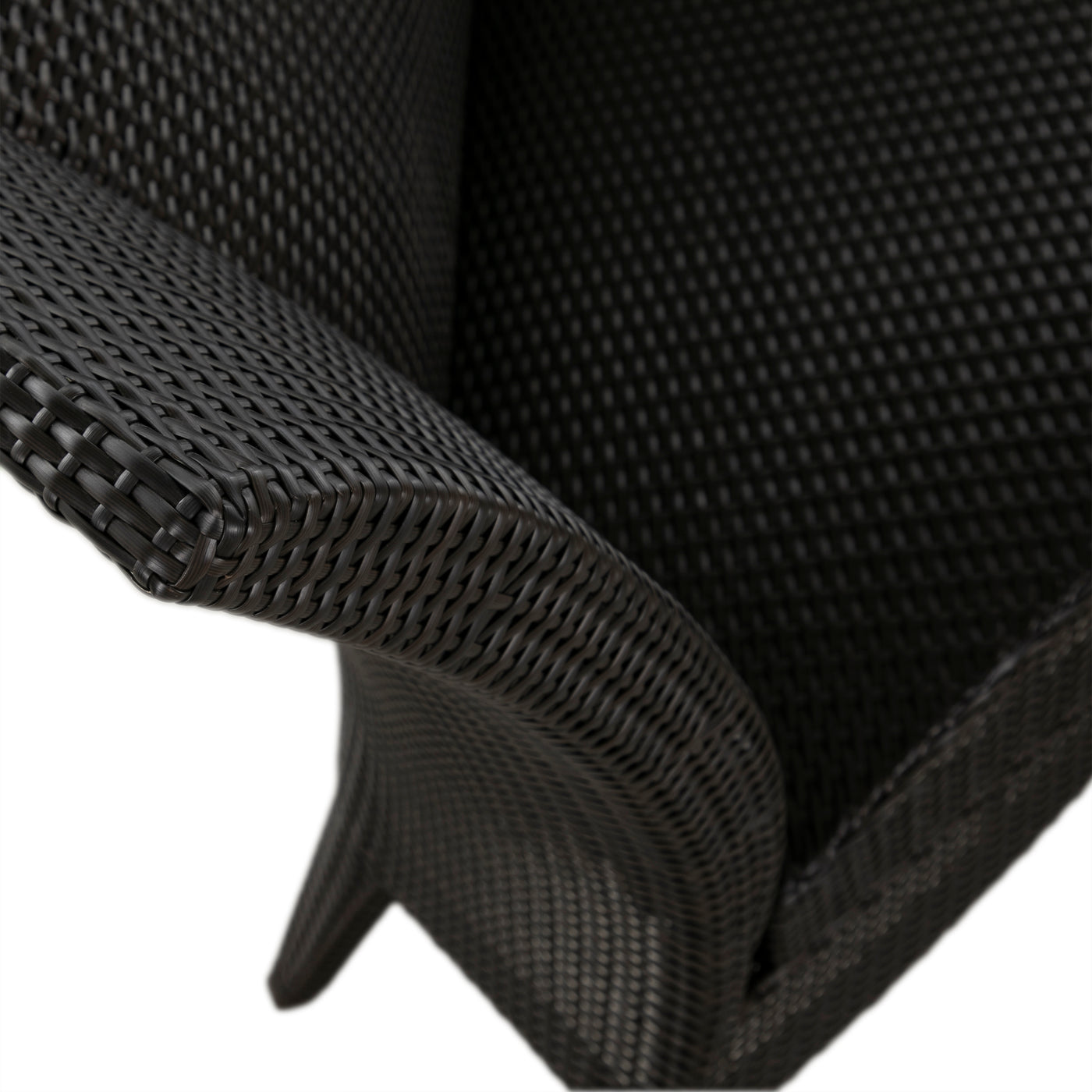 - Features an upholstered frame crafted in woven N-Dura wicker for lasting strength and elegant outdoor style