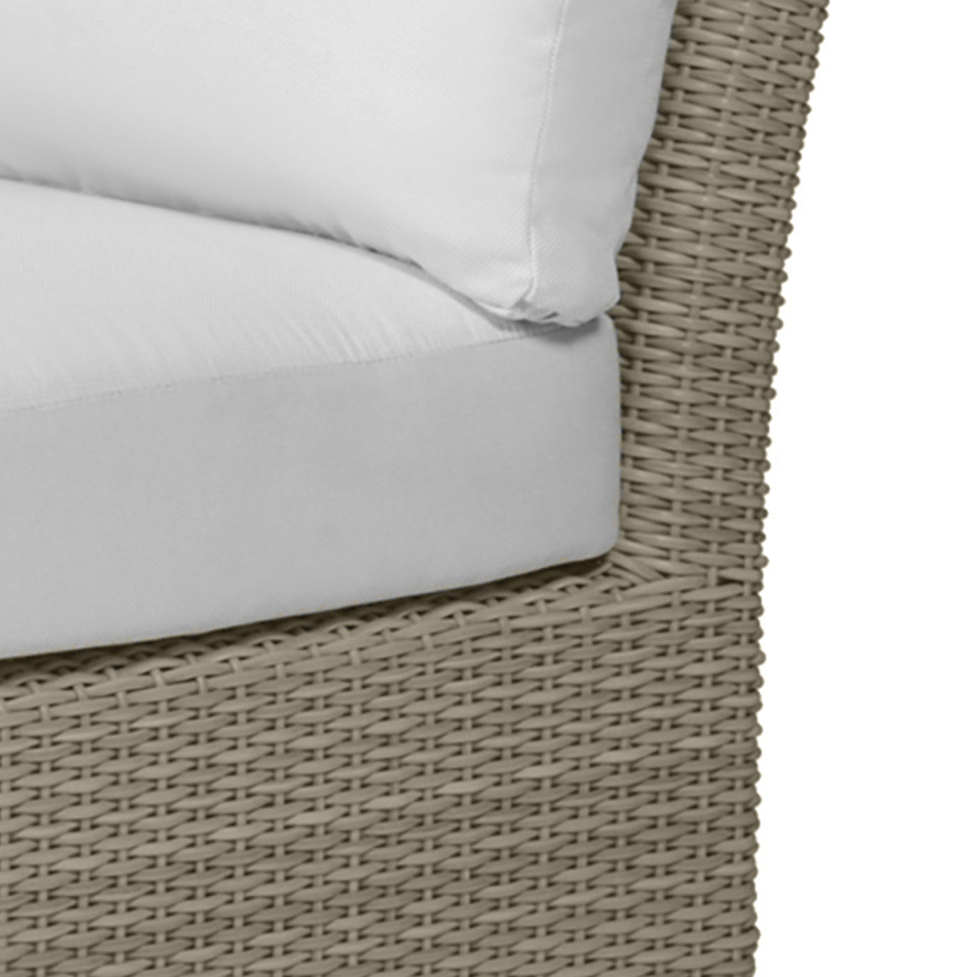 The Club Woven Corner from Summer Classics is a versatile outdoor seating solution that adapts to any space with ease. Its modular design allows you to curate the perfect sectional arrangement—pair two corners for a cozy loveseat or add a slipper chair for a spacious outdoor sofa. Crafted from our durable N-Dura™ resin wicker, this corner sectional piece offers unparalleled UV resistance, ensuring vibrant color and structural integrity even after 4,000 hours of rigorous lab testing. The multi-tonal wicker resists fading, cracking, and peeling, promising longevity and aesthetic appeal far superior to traditional wicker. Constructed with a sturdy wrought aluminum frame, the Club Woven Corner is built to last for years of outdoor enjoyment.