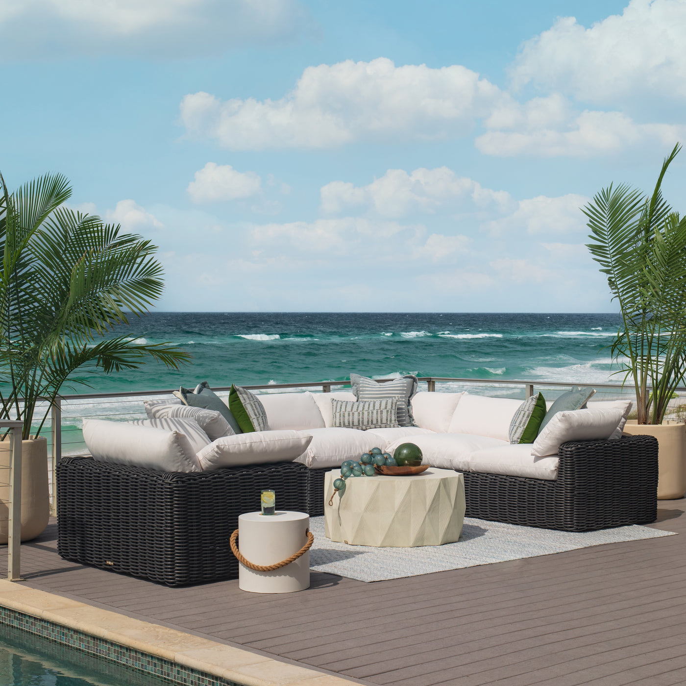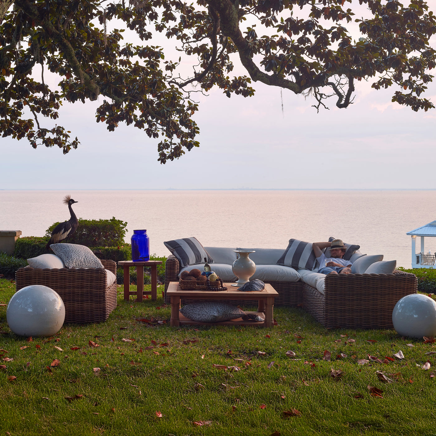 The Montecito Right Arm Facing Sectional Chaise features oversized proportions for the ultimate in luxurious seating. Inspired by the charm of handwoven basketry, the large wicker weave offers a relaxed look and feel to the low, linear profile of this outdoor chaise. Made for years of enjoyment and beauty with highly weather- and UV-resistant N-Duraâ„¢ resin wicker for a worry-free experience with the look of natural materials. Pair with the Montecito Left Arm Facing Chaise to create an outdoor sectional sofa.