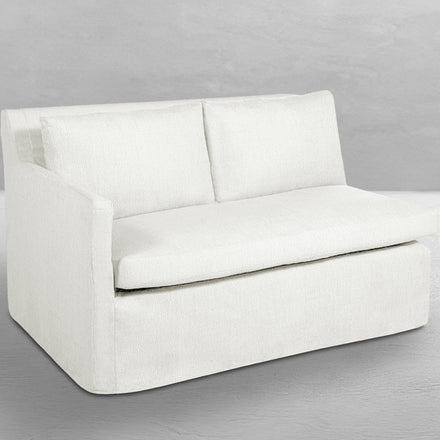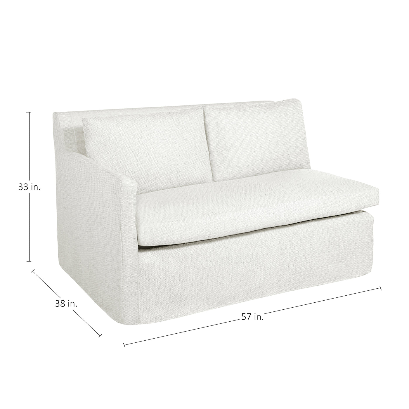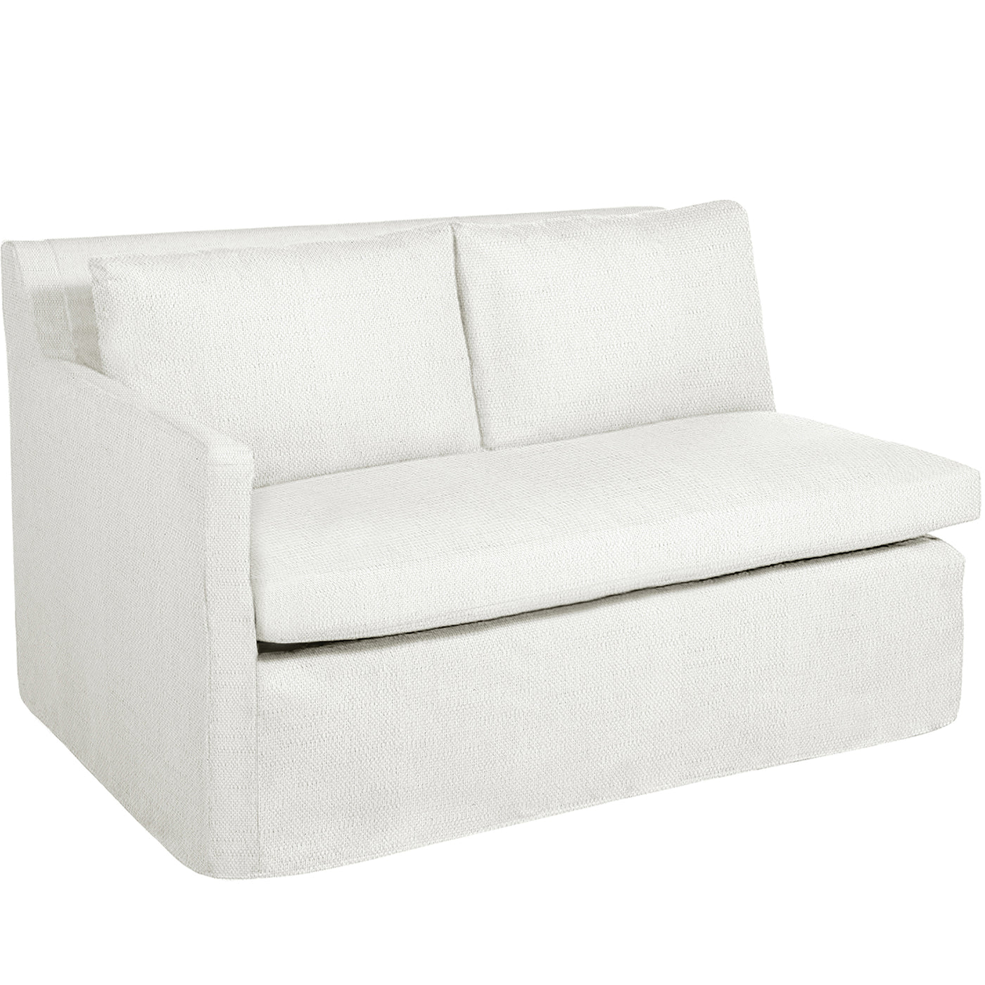 Enhance your outdoor space with the Nora Left Arm Facing Loveseat from the SC Tailored Collection, designed for both customization and comfort. This adaptable sectional allows you to mix and match components like corner sofas, chaises, and armed sofas to fit your preferred layout. It features a comfortable seat deck, plush back cushions, and a slip-cover for easy care. Built with marine-grade materials and UV-resistant fabric, it ensures durability and fade resistance. The high-resiliency cushions and premium padding offer supreme comfort and include anti-microbial properties to resist mold and mildew, maintaining the freshness and longevity of your setup.
