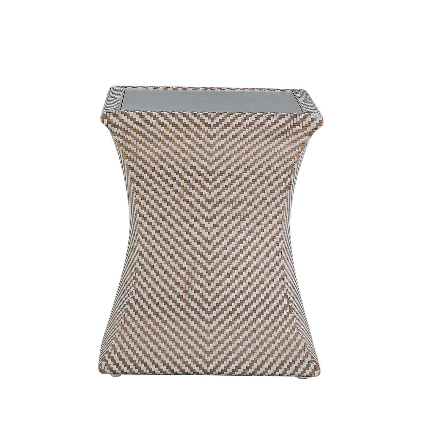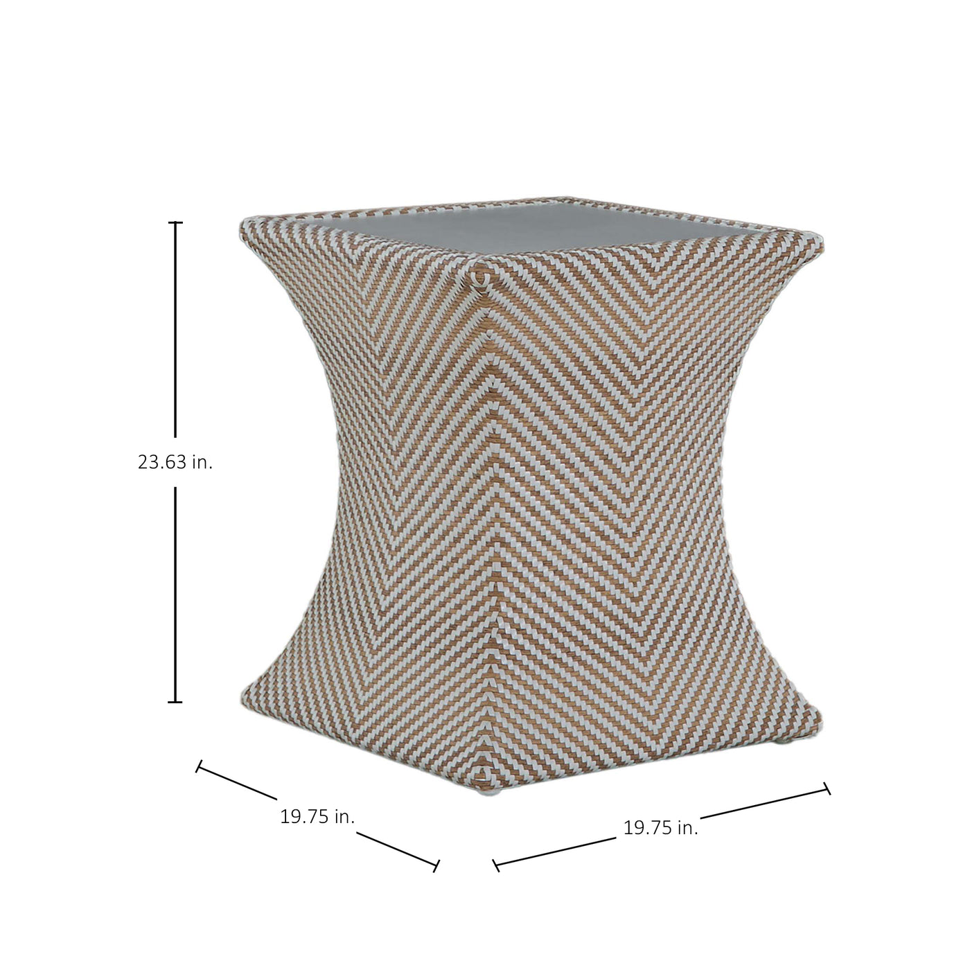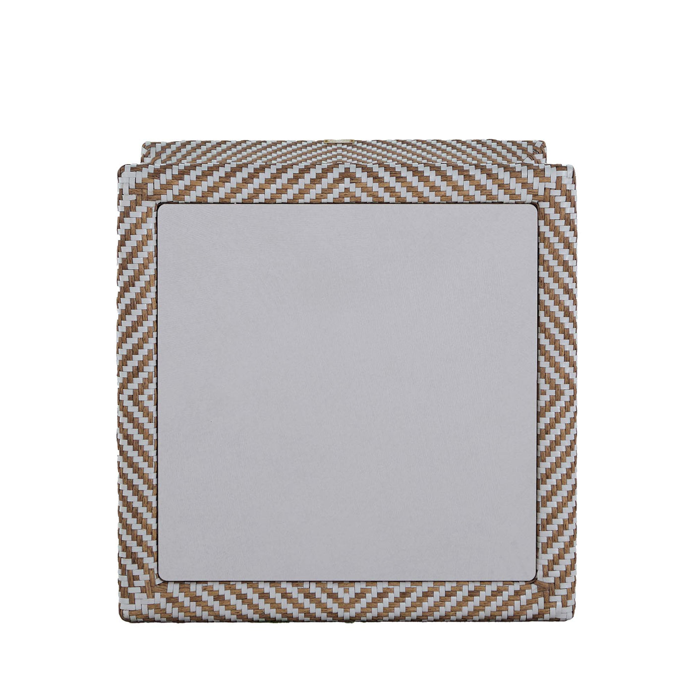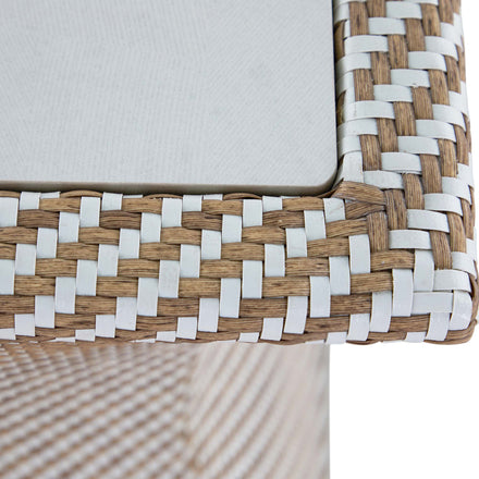 The Bari Square End Table offers compact style and practical function for outdoor settings. Its sculptural silhouette is wrapped in hand-woven, two-tone chevron N-Dura™ resin wicker for a textured, durable finish. Topped with smooth, beautiful and weather-resistant porcelain, it’s ideal for holding drinks or décor beside lounge seating. Designed to coordinate seamlessly with the Bari Collection, it delivers lasting performance with a refined look.