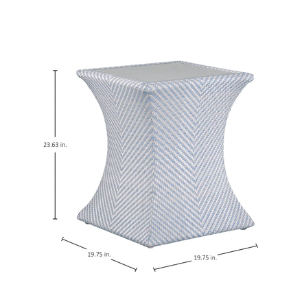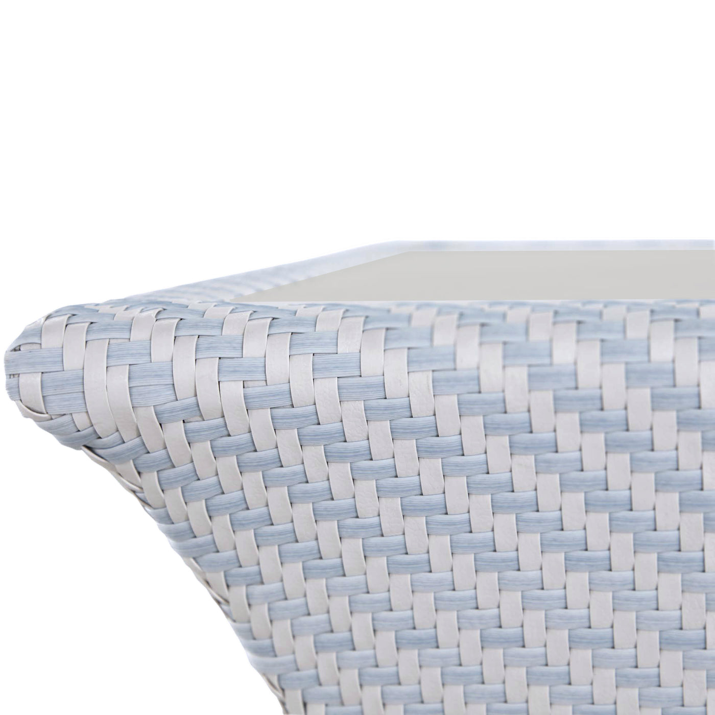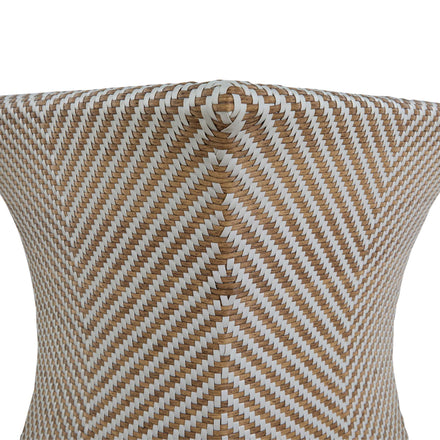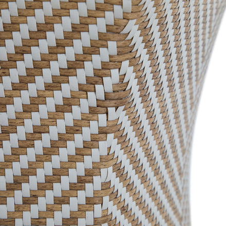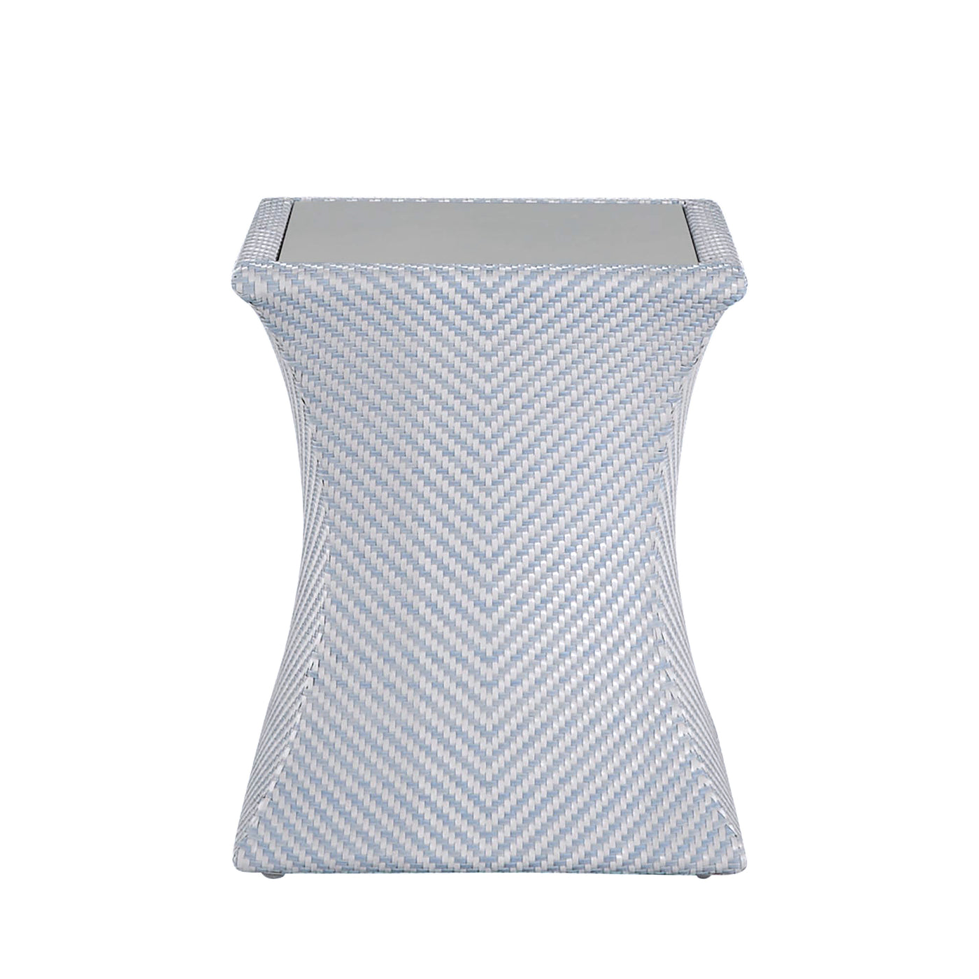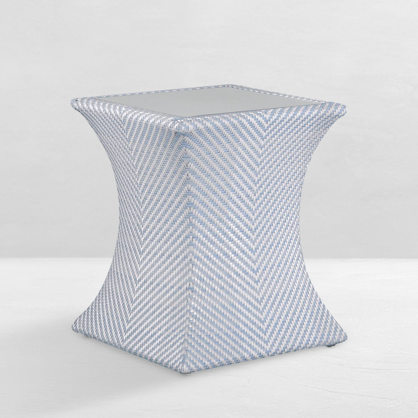 The Bari Square End Table offers compact style and practical function for outdoor settings. Its sculptural silhouette is wrapped in hand-woven, two-tone chevron N-Dura™ resin wicker for a textured, durable finish. Topped with smooth, beautiful and weather-resistant porcelain, it’s ideal for holding drinks or décor beside lounge seating. Designed to coordinate seamlessly with the Bari Collection, it delivers lasting performance with a refined look.