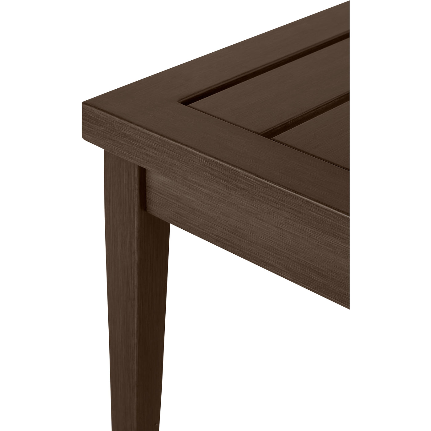 The Brookings End Table is a perfect addition for your casual gatherings. Crafted from premium wrought aluminum, this coffee table features a triple-layer coating—powder, dry, and polyurethane clear coats—providing ultimate weather resistance and preventing corrosion, fading, and wear. Its thick walls and internal supports offer unparalleled strength and stability, ensuring long-lasting durability even under heavy use. The slatted design of the table allows for efficient water drainage, making it exceptionally easy to care for. The Brookings Coffee Table helps to create an inviting space for conversation and connection on your outdoor patio.