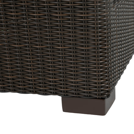 - Sturdy wrought aluminum frame and handwoven N-Dura resin wicker for lasting outdoor durability
