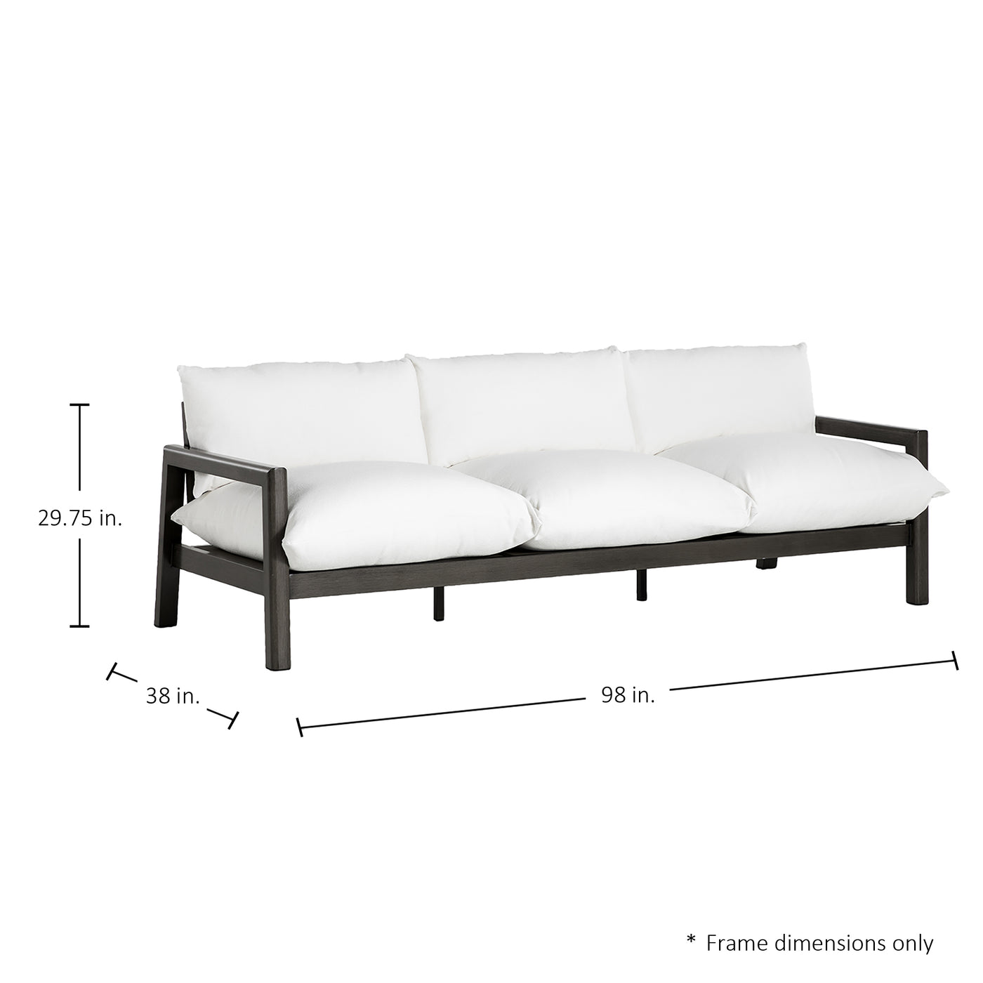 Width: 98" / Height: 29.75" / Depth: 38"