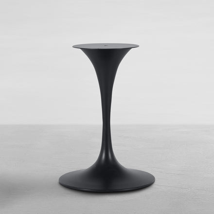 The Tulip Table Base is constructed from wrought aluminum with a robust triple-layer coating, standing resilient against weathering and wear. Its sleek, sculptural silhouette is inspired by the classic Tulip design, offering a seamless blend of mid-century modern charm and contemporary chic. This base comes available in various finishes. Please note, this base cannot accommodate an umbrella.