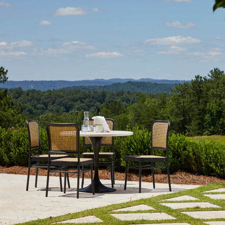 - Pedestal base offers sturdy support for dining tops in outdoor seating setups