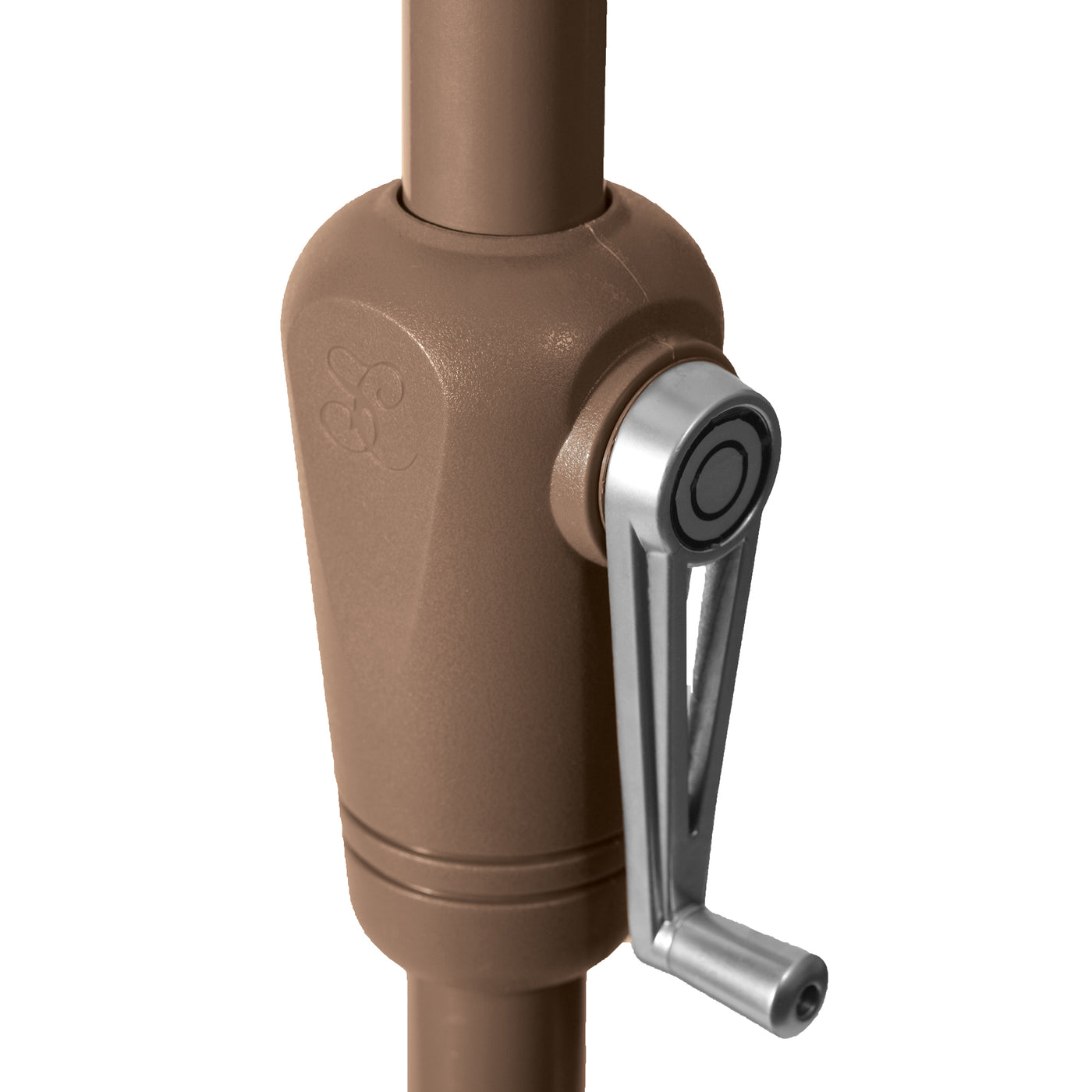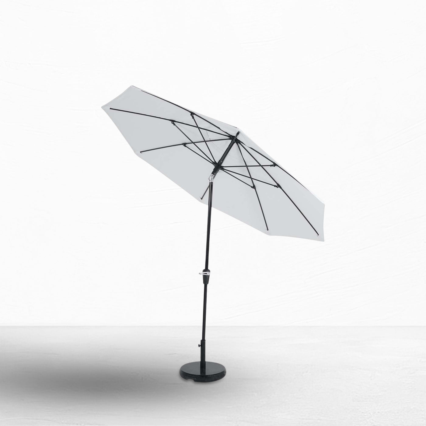 Elevate your outdoor oasis with our 9' Crank Auto Tilt Umbrella, designed for the perfect blend of function and style. Crafted from industrial-grade fiberglass, this umbrella stands at 93" tall and spreads to a generous 108" diameter, casting a wide shade to protect you from the sun's rays at any angle, thanks to its convenient tilt feature. Offered in four sophisticated finishes and numerous fabric choices, it effortlessly enhances any furniture arrangement. Choose between any of our umbrella bases for stability and ease of movement. Ideal for stand alone umbrellas and all SC tables with umbrella holes, this umbrella not only offers a chic finish to your seating area but also ensures lasting comfort and protection.