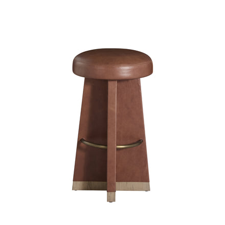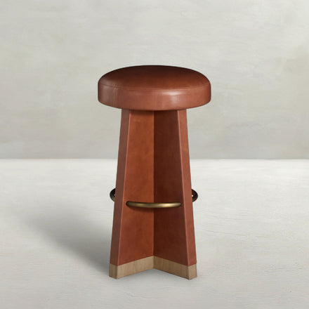 The Plateau Swivel Bar Stool in Dawn brings a refined balance of craftsmanship and comfort to any bar or kitchen setting. Crafted from oak in a soft Dawn finish, it’s wrapped in luxurious top-grain Gramado Saddle leather that adds warmth and texture to the piece. The rounded, generously cushioned seat provides exceptional comfort, while the 360-degree swivel functionality allows for easy movement and conversation. Its angular base design offers a bold, sculptural presence, complemented by an antiqued brass finish footrest that enhances both support and visual appeal. The oak detailing at the base ties the look together, giving the stool a grounded, organic feel. Blending rustic warmth with modern sophistication, the Plateau Stool makes a statement while seamlessly fitting into a range of interiors—from contemporary to transitional.