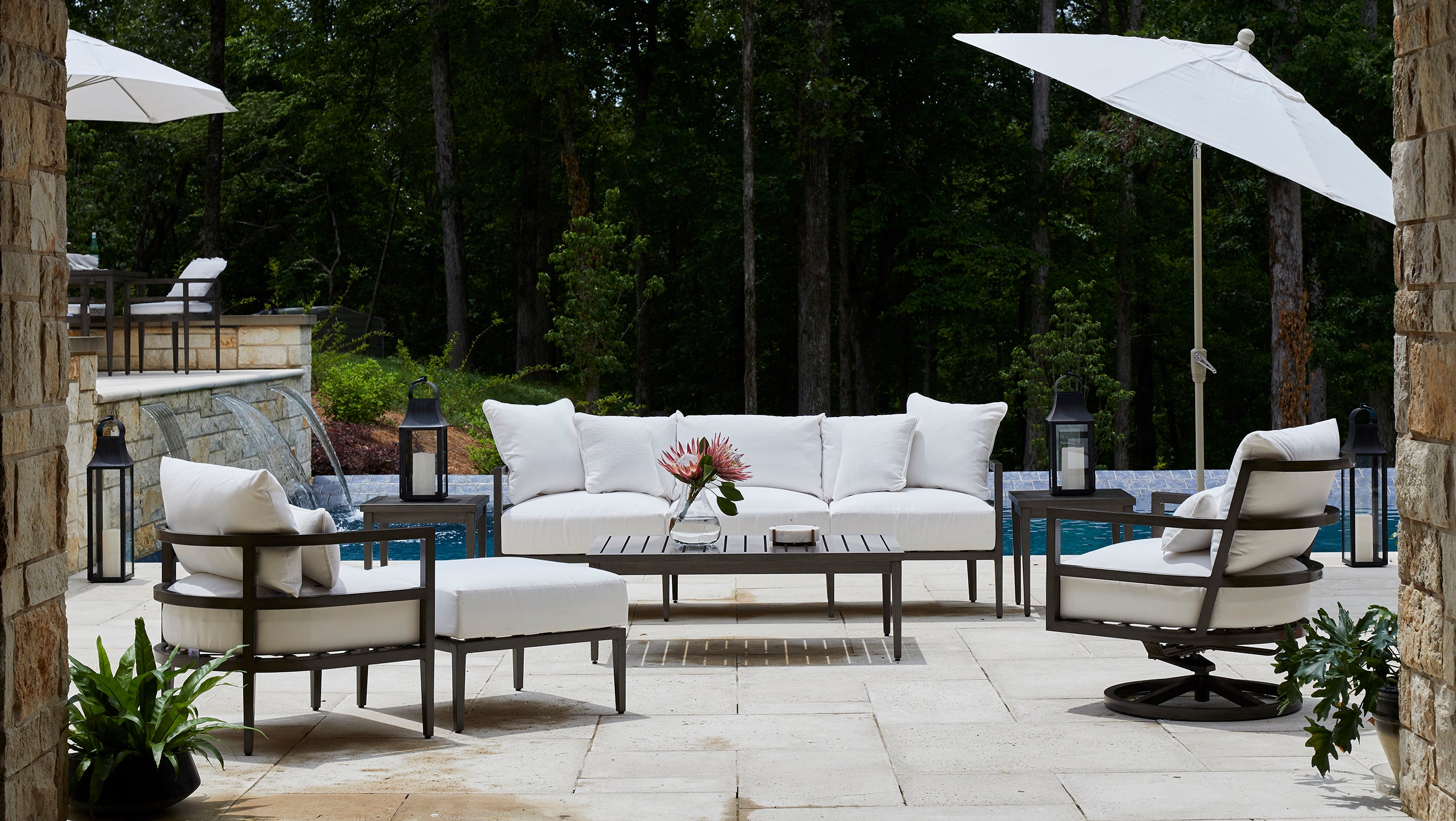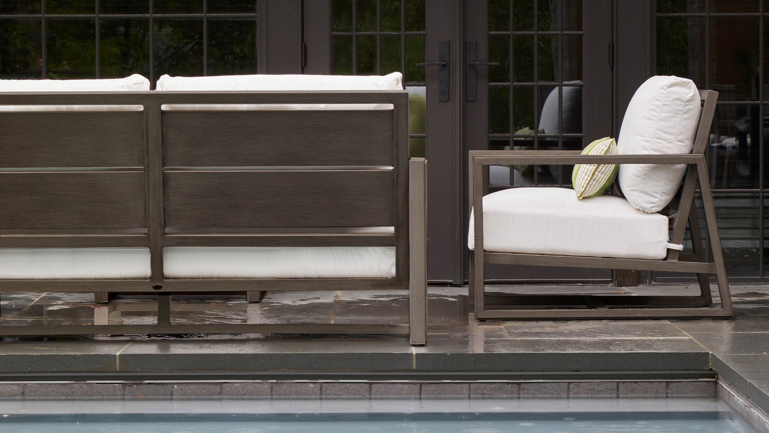 Inspired by the Spanish island, the Majorca Collection combines durability and beauty with large proportions, overstuffed cushions, and a sturdy tubular wrought aluminum frame finished in elegant slate grey for lasting outdoor comfort.