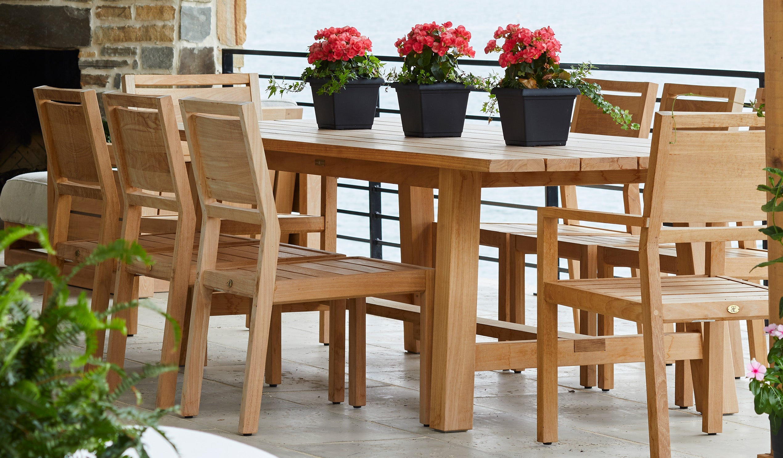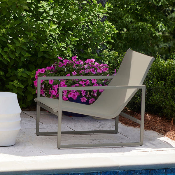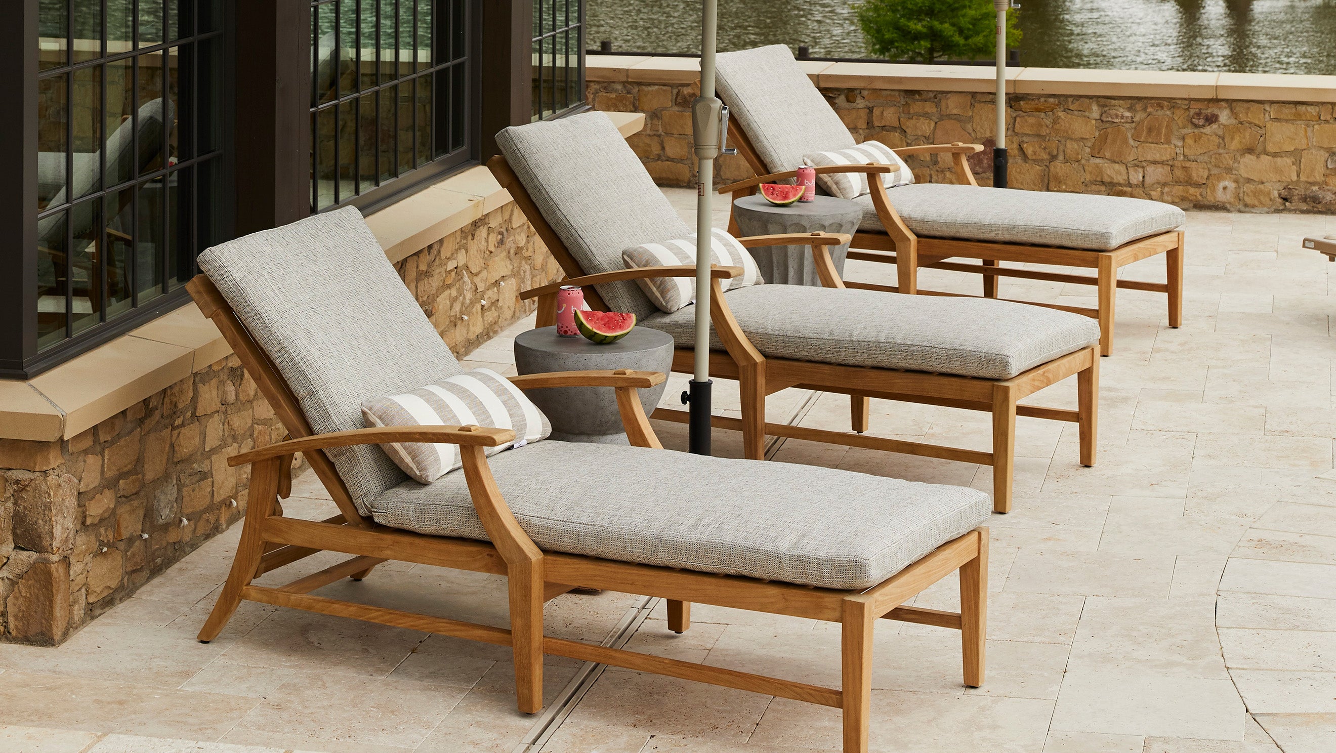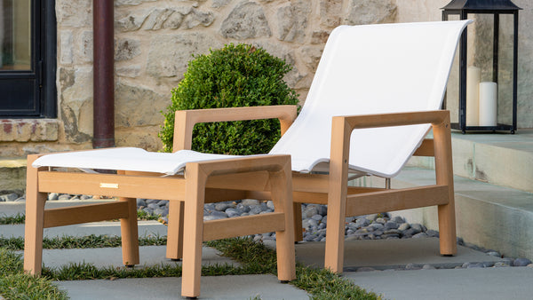 The Coast Collection blends clean, modern lines with durable materials, featuring hand-carved FSC-certified Indonesian teak, stainless steel accents, and canvas or grey Batyline™ sling upholstery. It offers timeless, sustainable outdoor sling furniture.