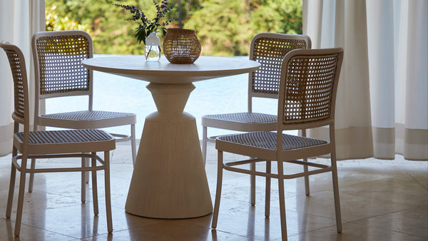 Inspired by classic European café culture, the Bordeaux Collection combines timeless charm with modern materials. Handcrafted from rust-resistant wrought aluminum and hand-woven N-Dura™ wicker, each piece offers lasting durability and artisanal elegance.