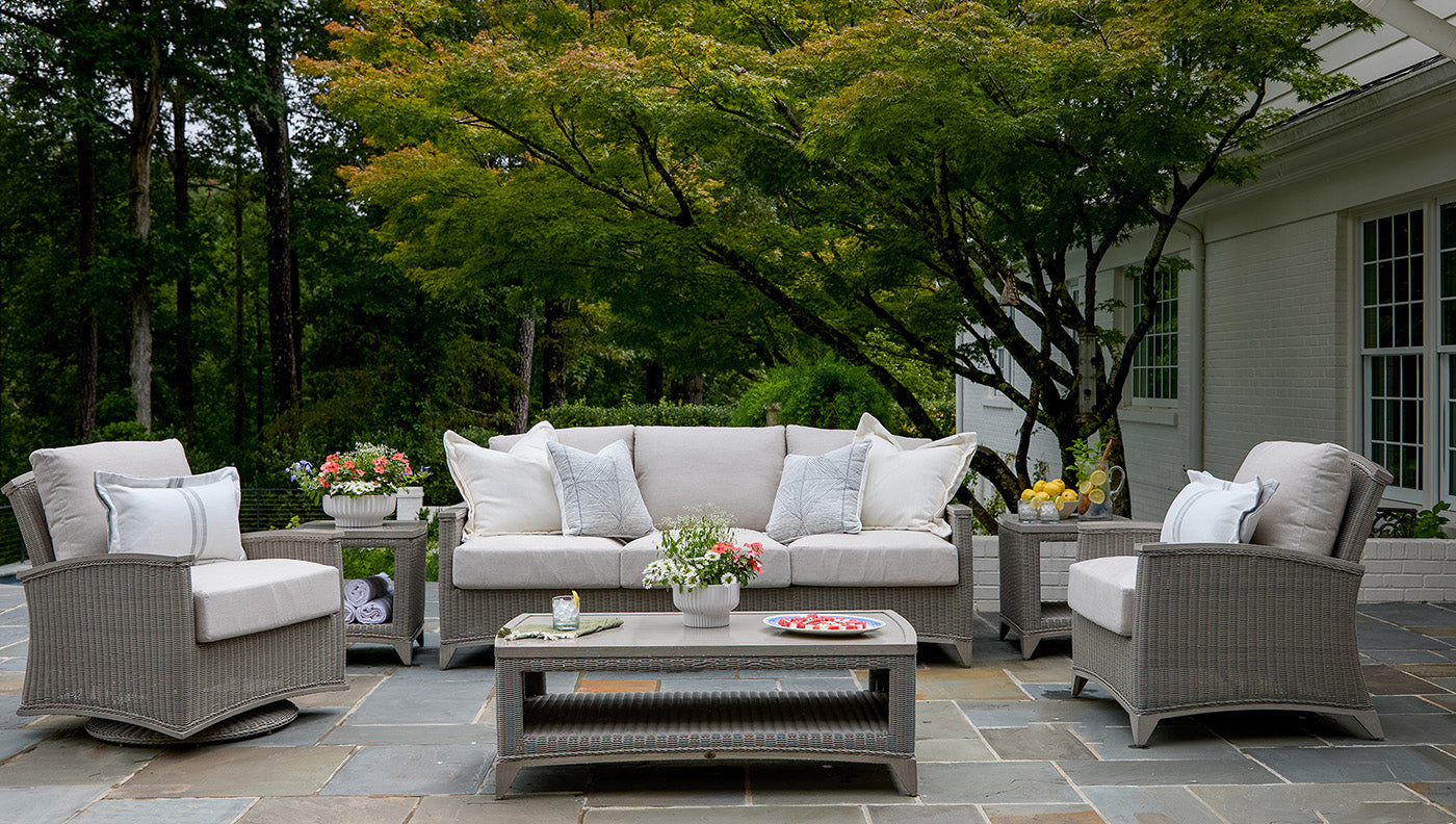 The Rustic Collection offers sturdy, timeless elegance with hand-woven, memory-tested N-Dura™ resin wicker over heavy-gauge aluminum, featuring UV resistance, antiqued finishes, and fine braiding for lasting quality and style.