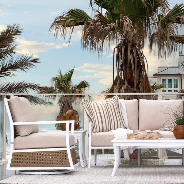 The Havana Collection blends classic open cane weaving with durable N-Dura™ resin wicker and polished aluminum frames, combining historic charm with modern, mid-century-inspired design for timeless outdoor style.