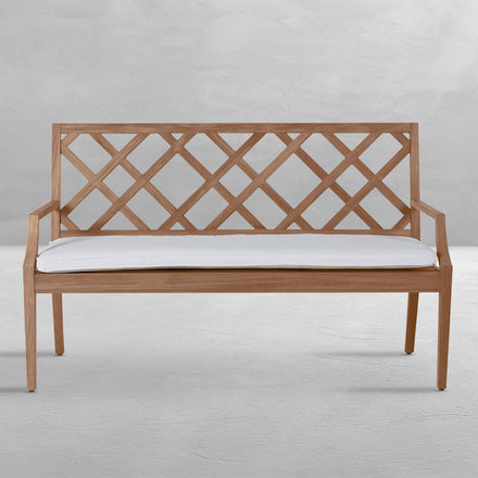 With its beautifully classic latticework design, the Haley Teak 60" Bench evokes traditional French Country style. Made from farm-grown teak, this bench is built to last and will be a statement piece in any outdoor space for years and years. This item is designed to be enjoyed either with or without a cushion. Please designate your choice in the below "Select a Cushion" dropdown.