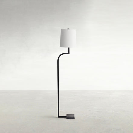 The Howard Floor Lamp is a striking combination of modern design and classic elegance. Crafted from iron with a rusty black finish, this floor lamp features a sleek, curved silhouette that adds a touch of modernity, while also making it incredibly easy to slide under furniture while giving out plenty of light. The design is topped with a crisp white linen shade, which provides a soft, diffused light perfect for creating a warm and inviting atmosphere. Ideal for living rooms, bedrooms, or reading nooks, the Howard Floor Lamp effortlessly enhances your decor with its contemporary appeal.