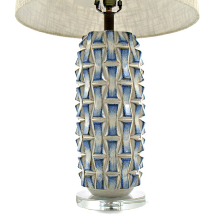 - Crafted with a striking blue and white ceramic base that evokes a fresh, coastal-inspired aesthetic