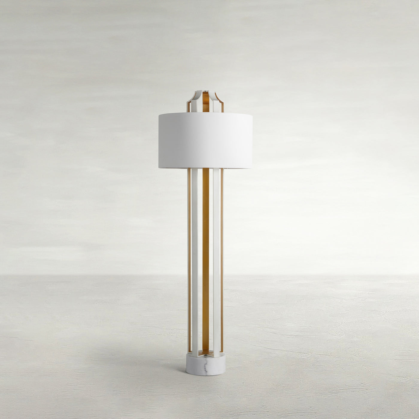 Krista White Vintage Gold Marble Base Floor Lamp - 80 in. H
